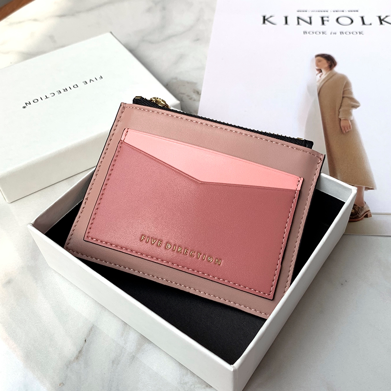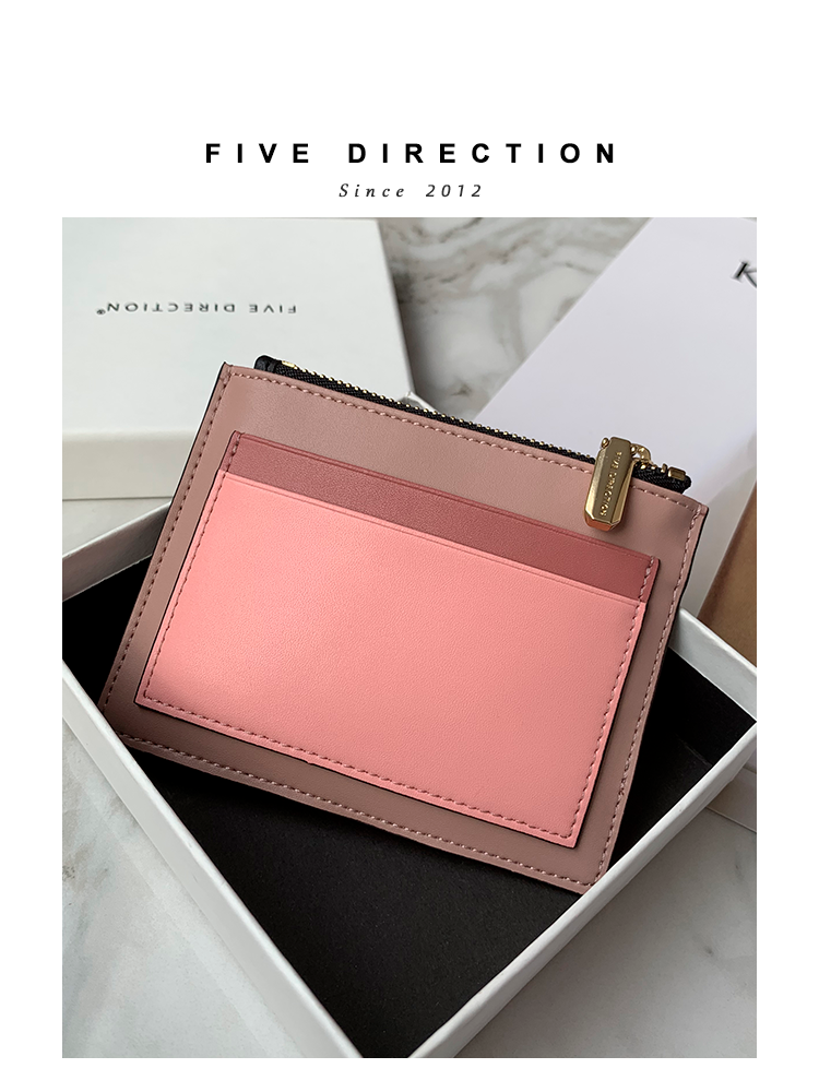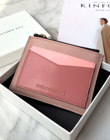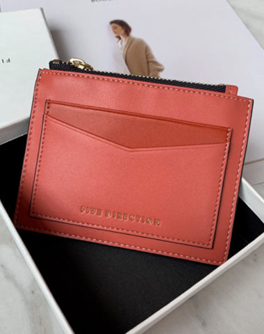 Design: Cute Women Red Vegan Leather Card Holders Slim KeyChain Card Wallet Zip Change Wallet For Women