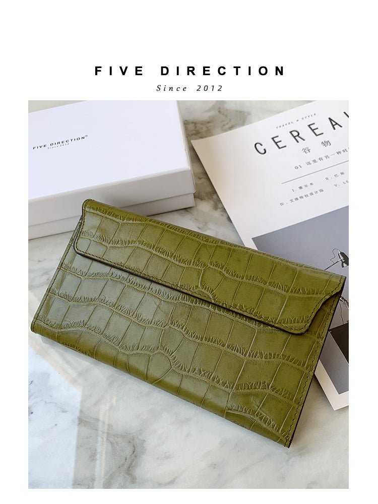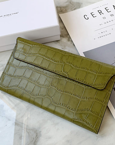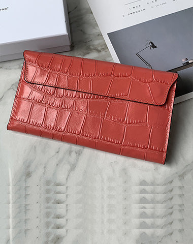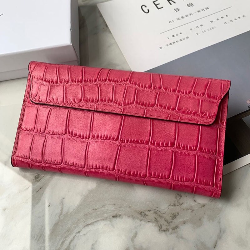 Design: Cute Women Rose Pink Vegan Leather Long Wallet Crocodile Pattern Card Holder Clutch Wallet For Women
