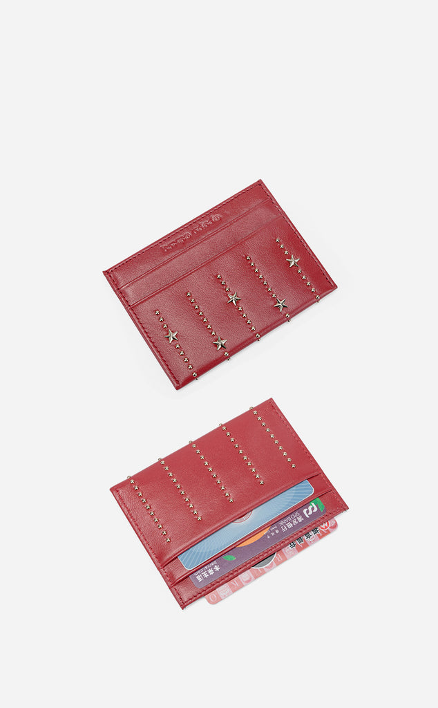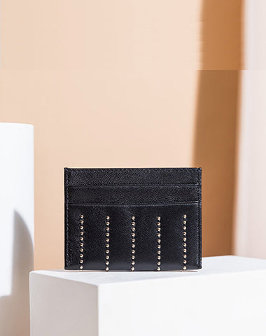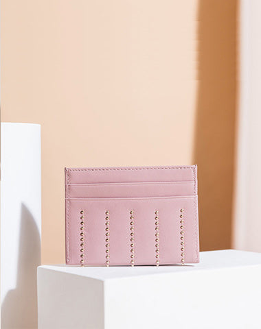 Design: Cute Women Sheepskin Card Holder Slim Card Wallet Card Holder with Rivets Credit Card Holder For Women