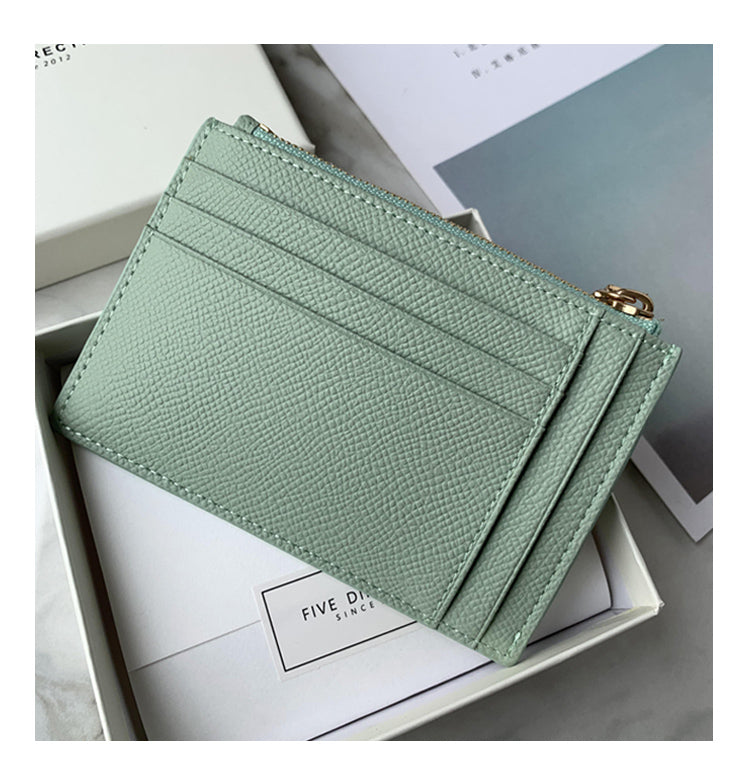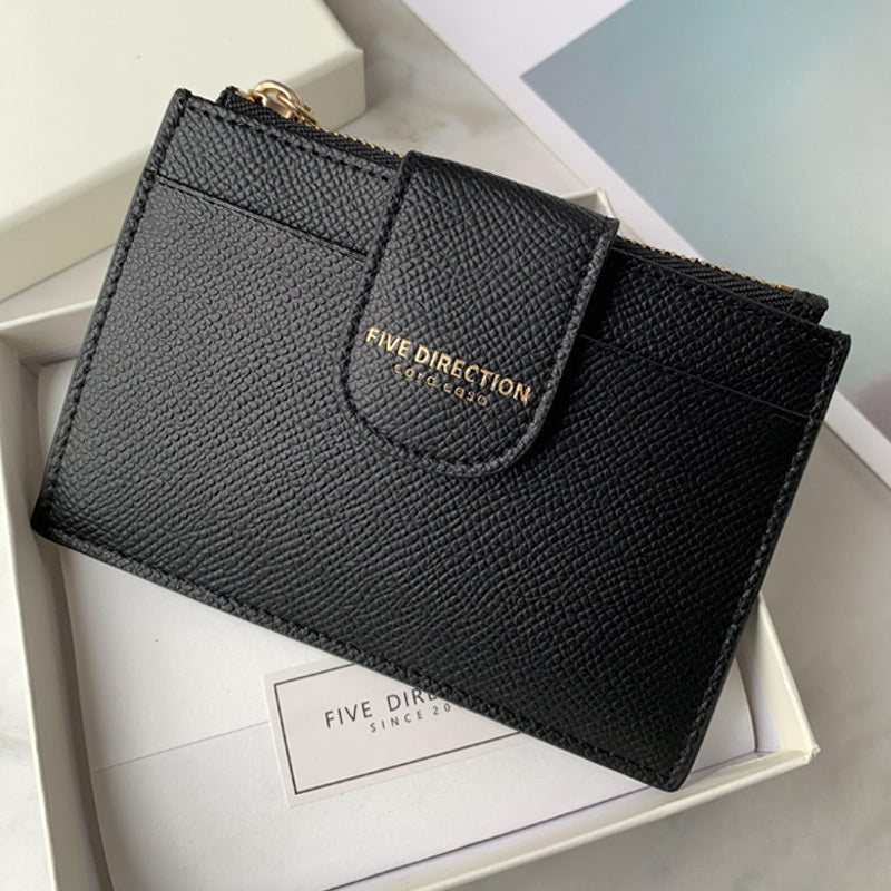 Slots: 5 card holders, 1 zipper slot, 1 change slot