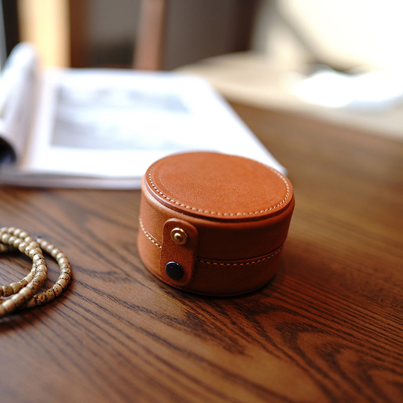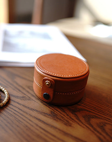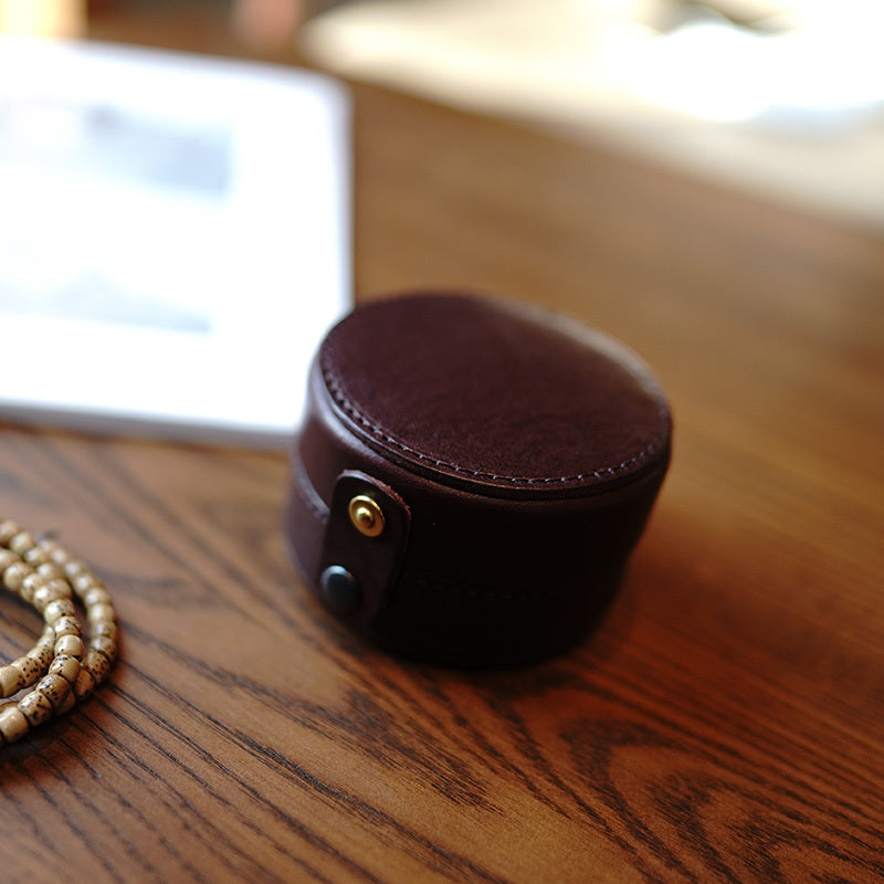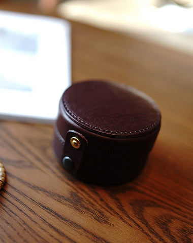 Cute Women Brown Leather Round Coin Wallet Box Small Portable Jewelry Storage Box For Women