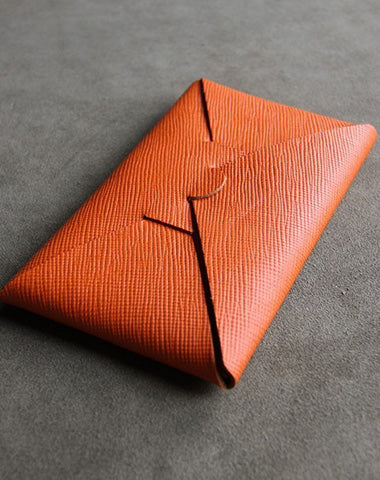 Cute Womens Beige Leather Envelope Wallet Slim Clutch Purse Checkbook Long Wallet for Women