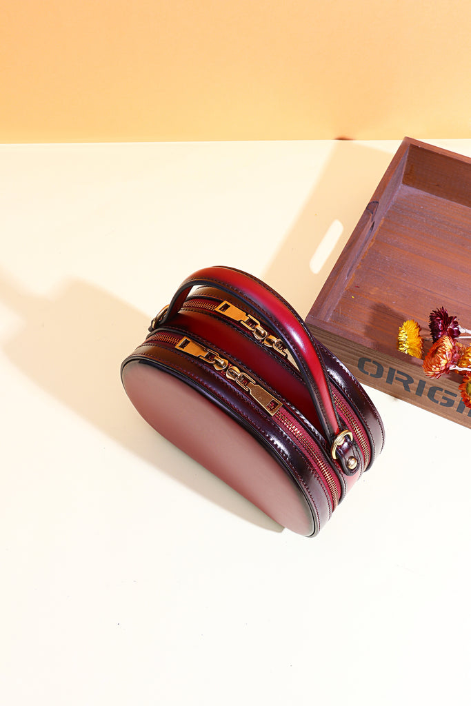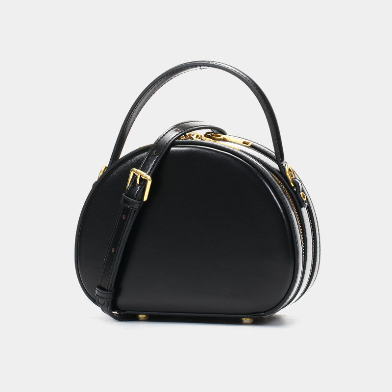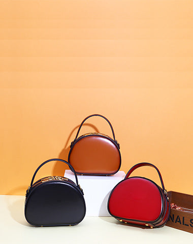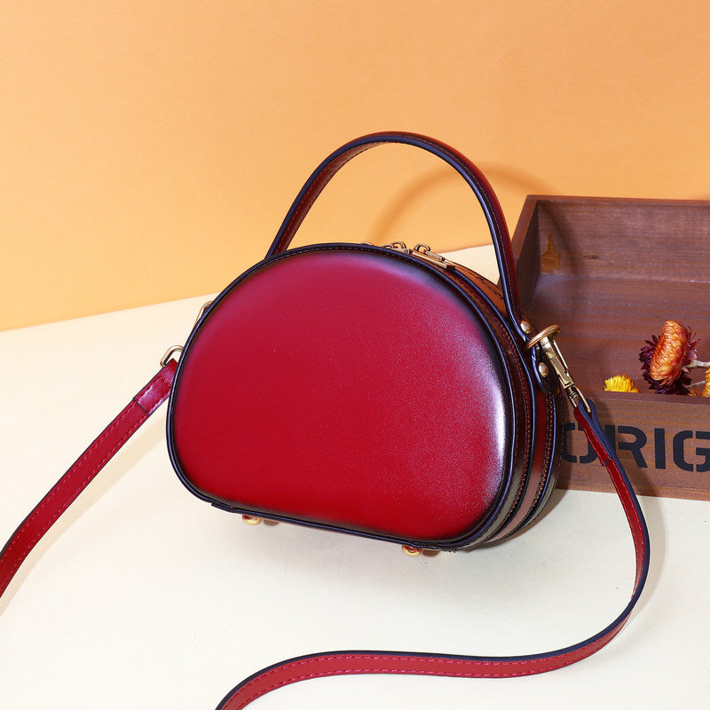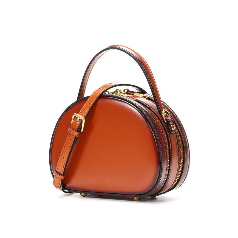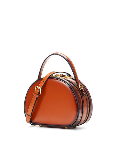 Design: Cute Womens Brown Leather Half Round Crossbody Purse Round Brown Shoulder Bag for Women