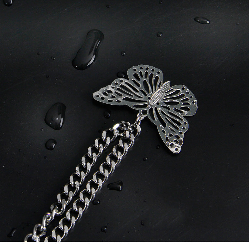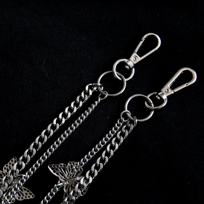 Style: Fashion Womens Butterfly Jeans Chain Silver Double Layers Butterfly Wallet Chains Panties Chains For Men