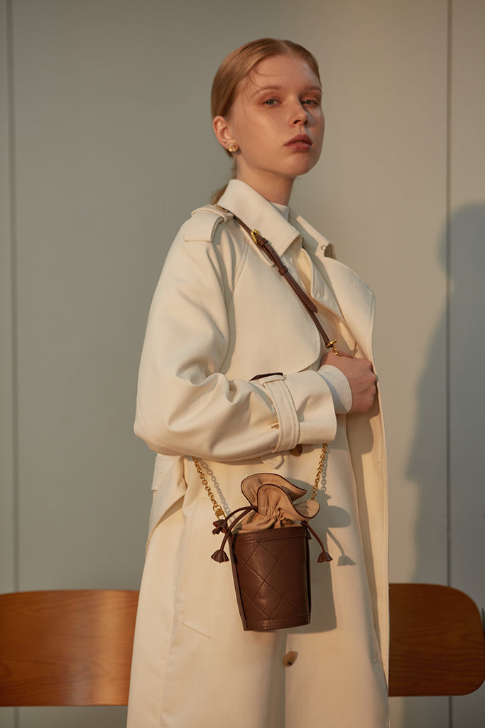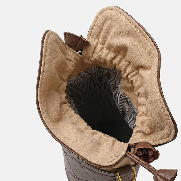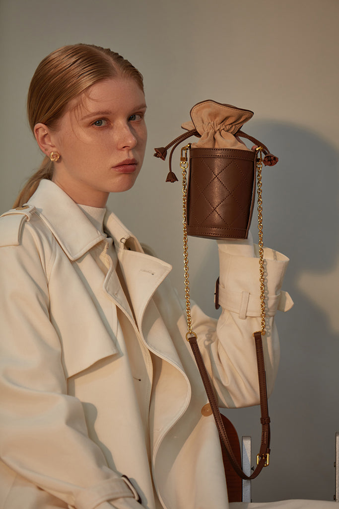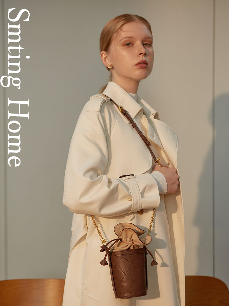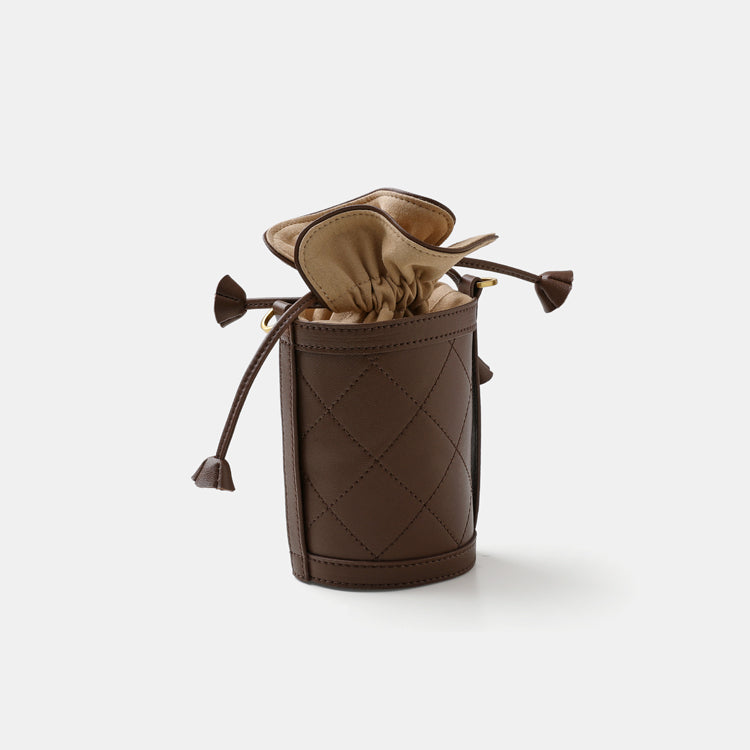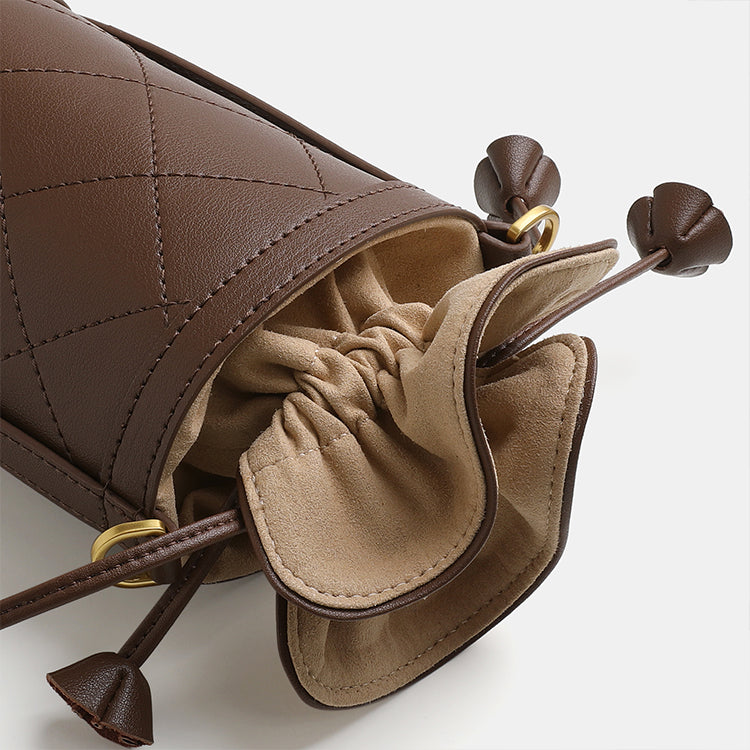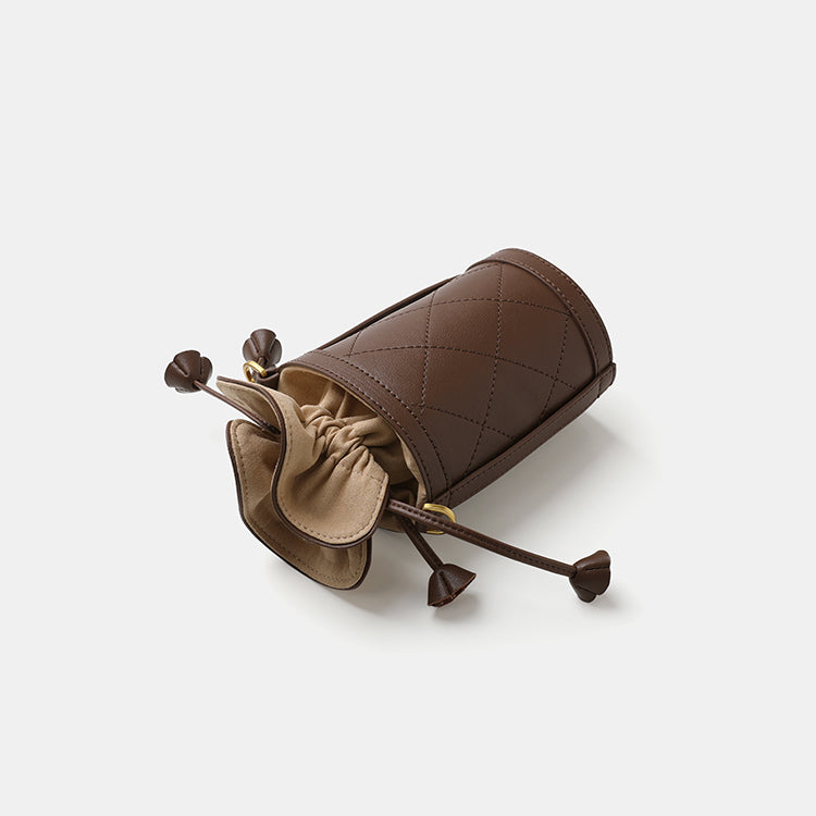 Design: Cute Womens Coffee Leather Barrel Chain Crossbody Purse Bucket Round Shoulder Bag for Women