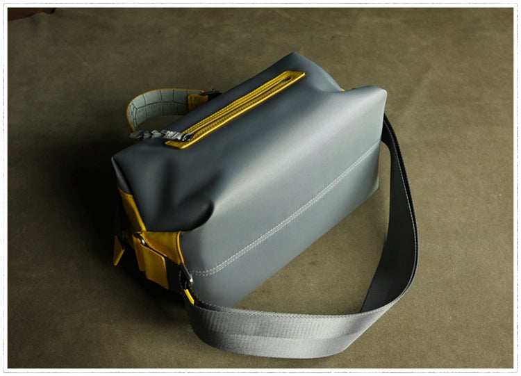 Cute Womens Gray&Yellow NYLON Handbag Purse Cube NYLON Shoulder Bag Crossbody Purse for Ladies