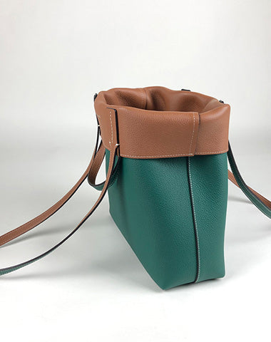 Design: Cute Womens Green&Brown Leather Shoulder Tote Bag Best Tote Handbag Shopper Bag Purse for Ladies