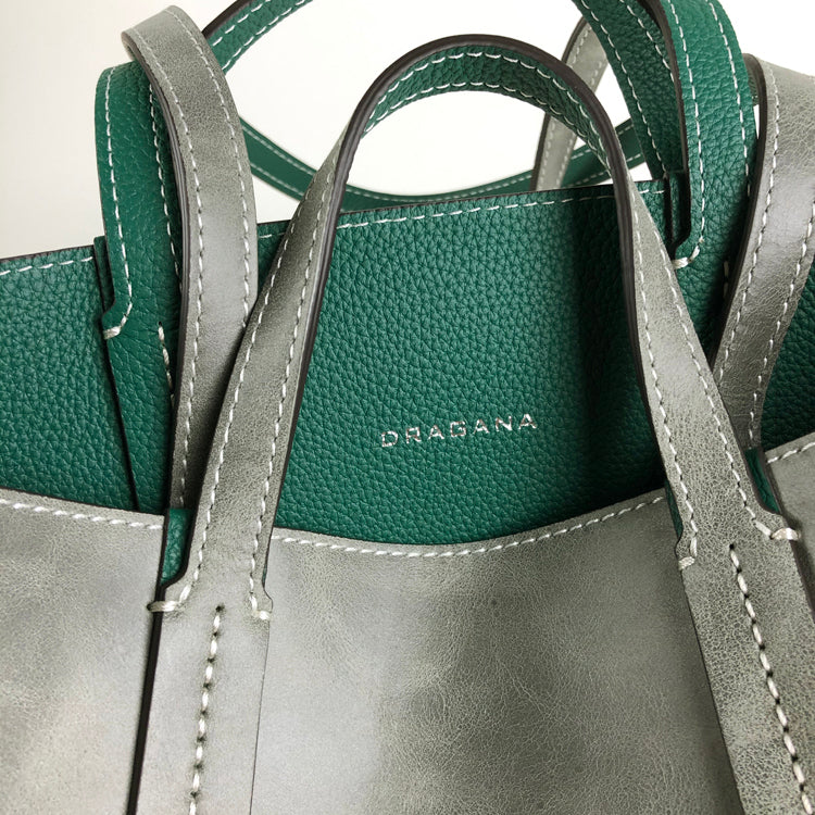 Style: Cute Womens Green&Brown Leather Shoulder Tote Bag Best Tote Handbag Shopper Bag Purse for Ladies