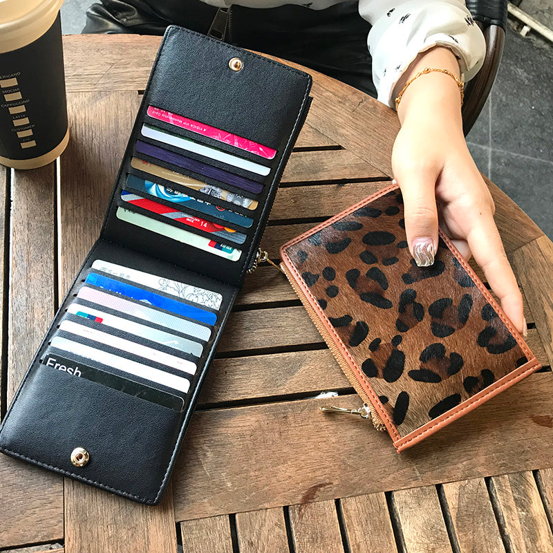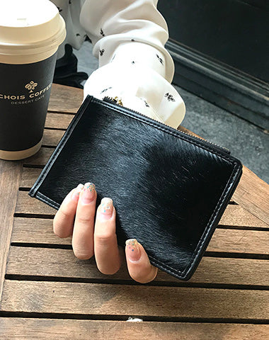 Style: Cute Womens Horse Hair Leopard Print Leather Card Wallets Card Clutch Wallet Zip Card Holder Wallet for Women