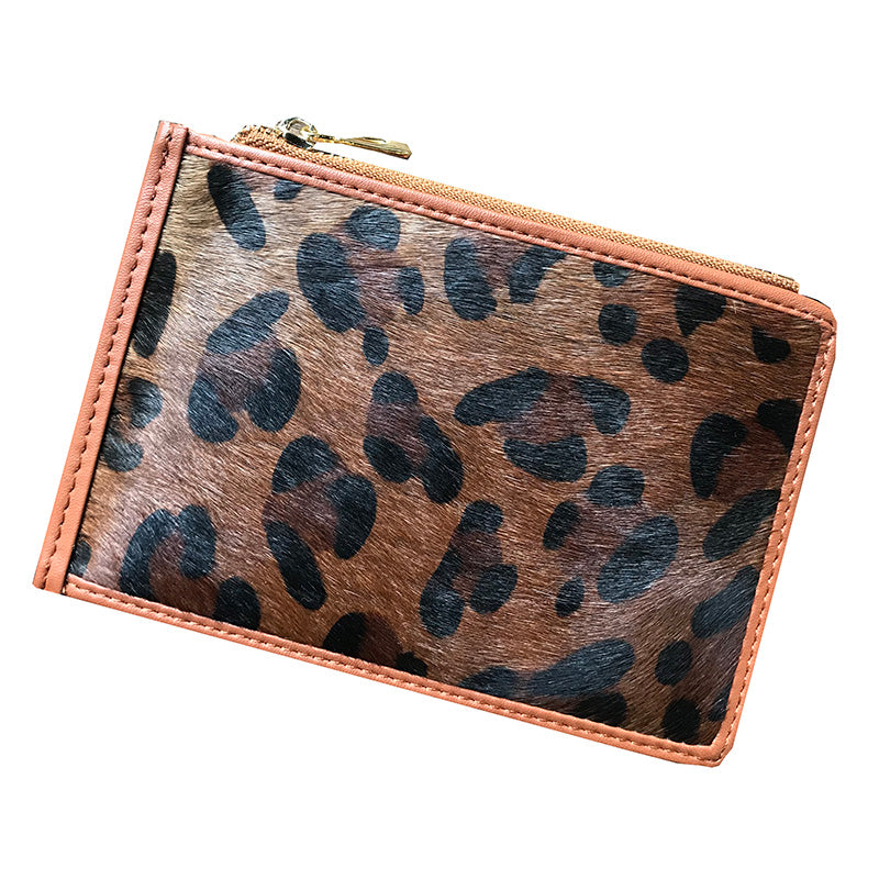 Design: Cute Womens Horse Hair Leopard Print Leather Card Wallets Card Clutch Wallet Zip Card Holder Wallet for Women