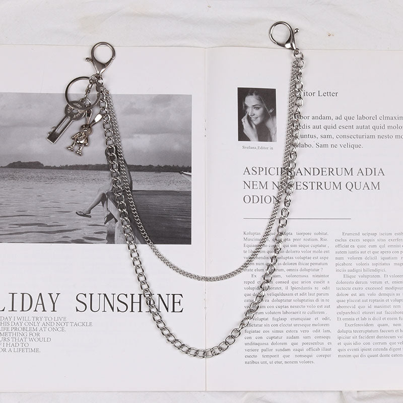 Style: Cute Womens Jeans Chain Double Layers With Bunny Charms Wallet Chains For Women