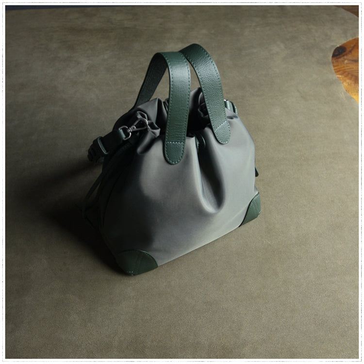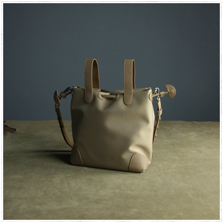 Cute Womens Khaki NYLON Bucket Handbag Purse Barrel NYLON Shoulder Bag Crossbody Purse for Ladies