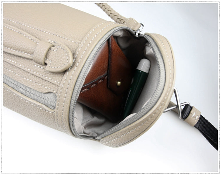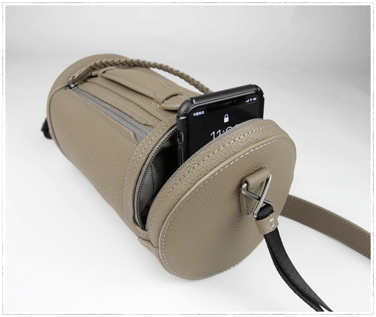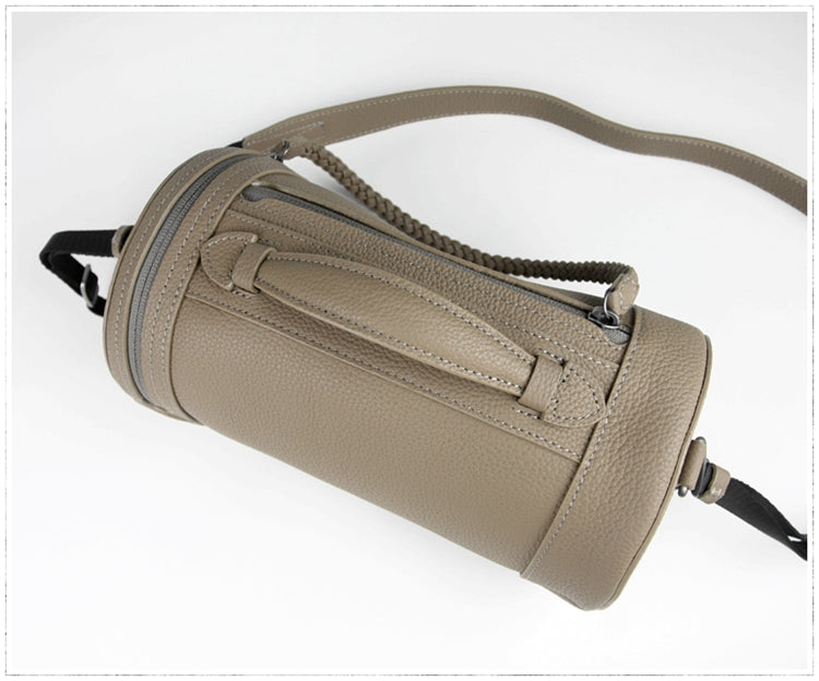 Design: Cute Womens Light Gray Leather Bucket Shoulder Purse Barrel Crossbody Bag Purse for Ladies