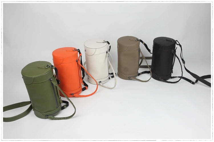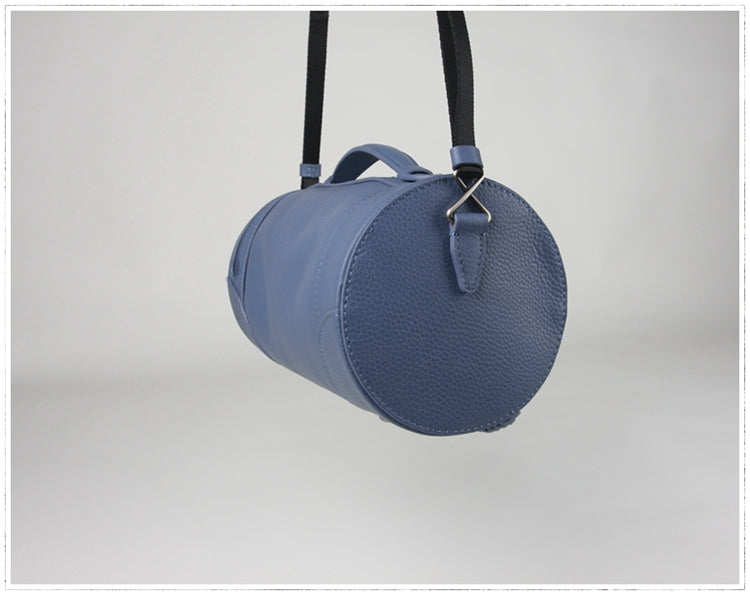 Style: Cute Womens Light Gray Leather Bucket Shoulder Purse Barrel Crossbody Bag Purse for Ladies