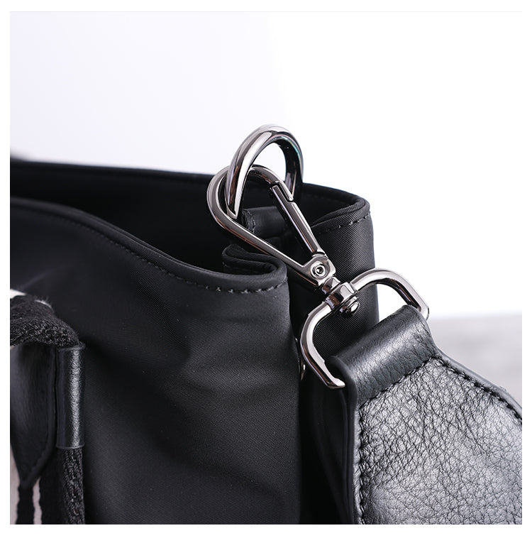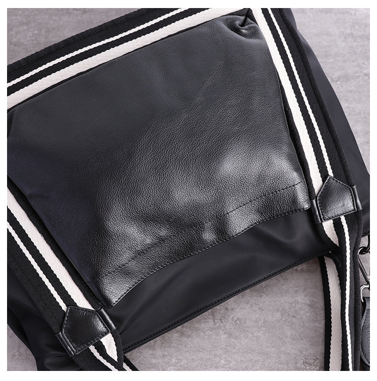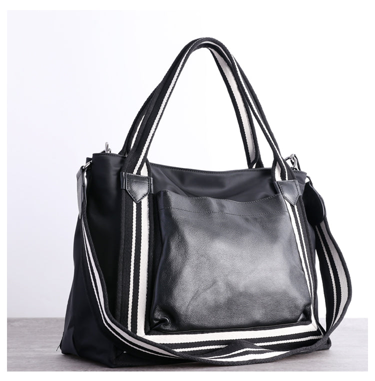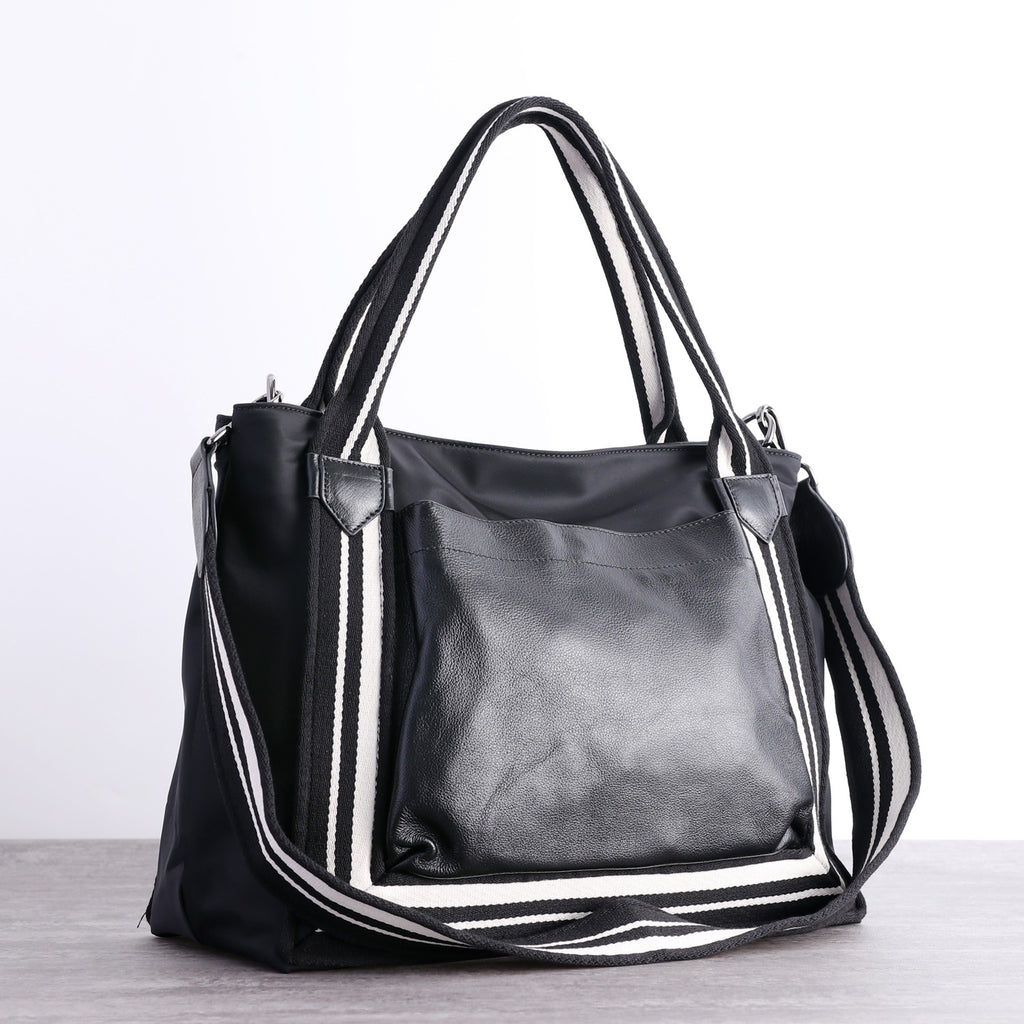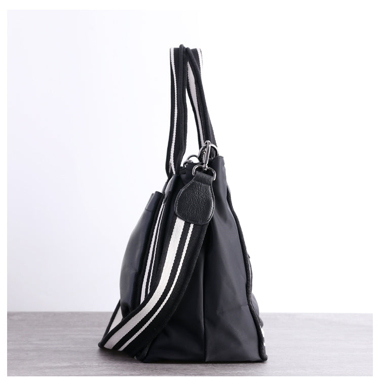 Style: Classic Womens Nylon Leather Handbags Mens Black Nylon Laptop Shoulder Purse for Ladies