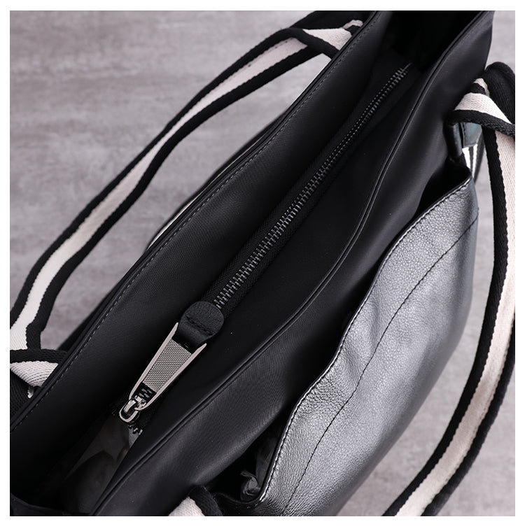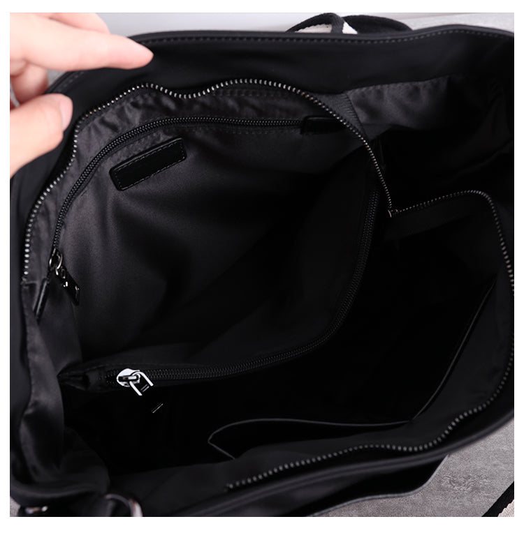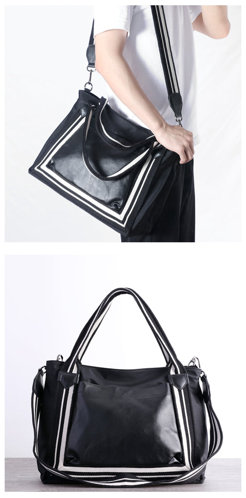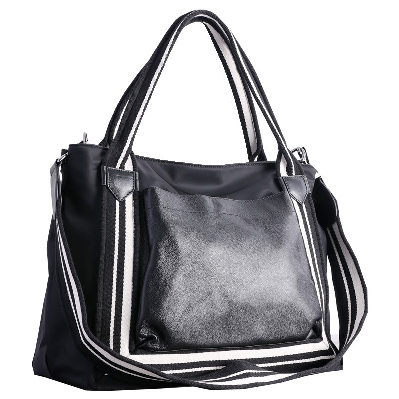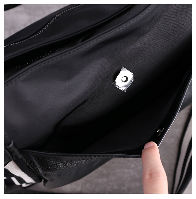 Style: Classic Womens Nylon Leather Handbags Mens Black Nylon Laptop Shoulder Purse for Ladies