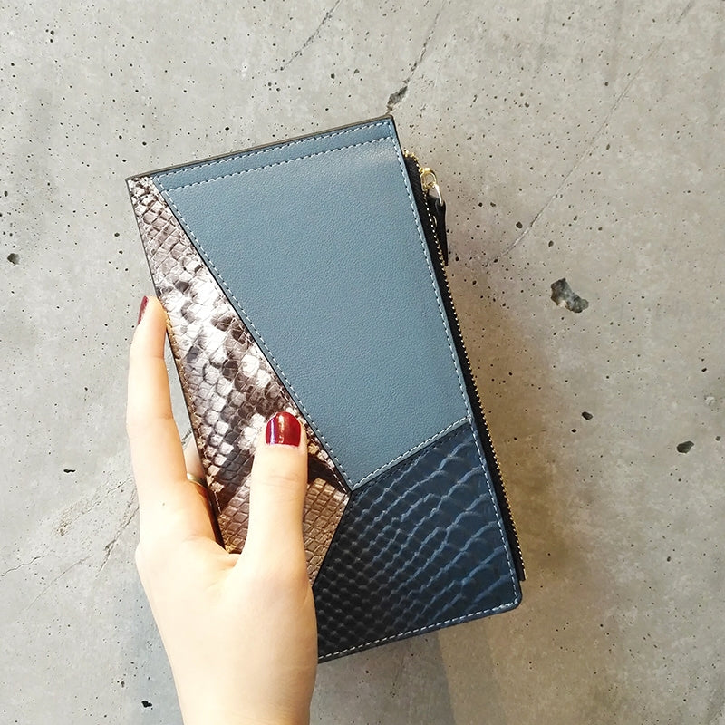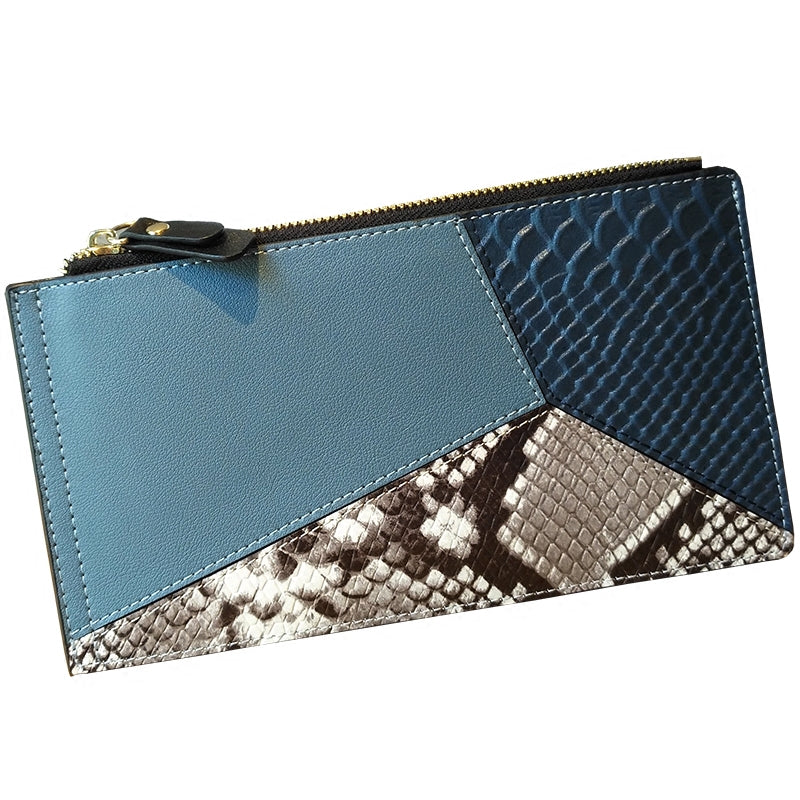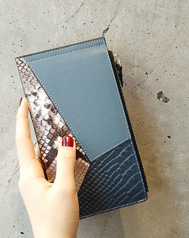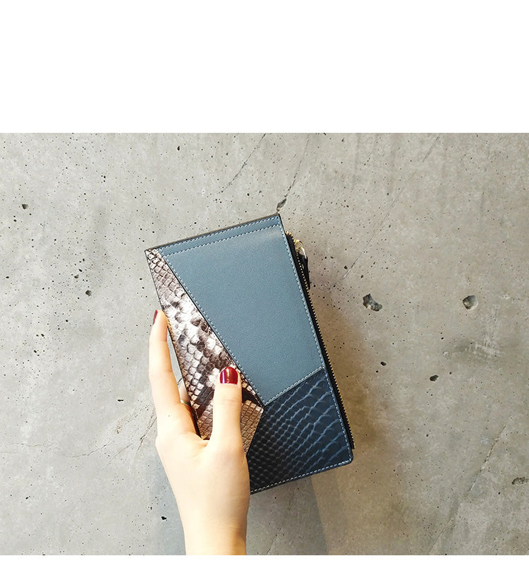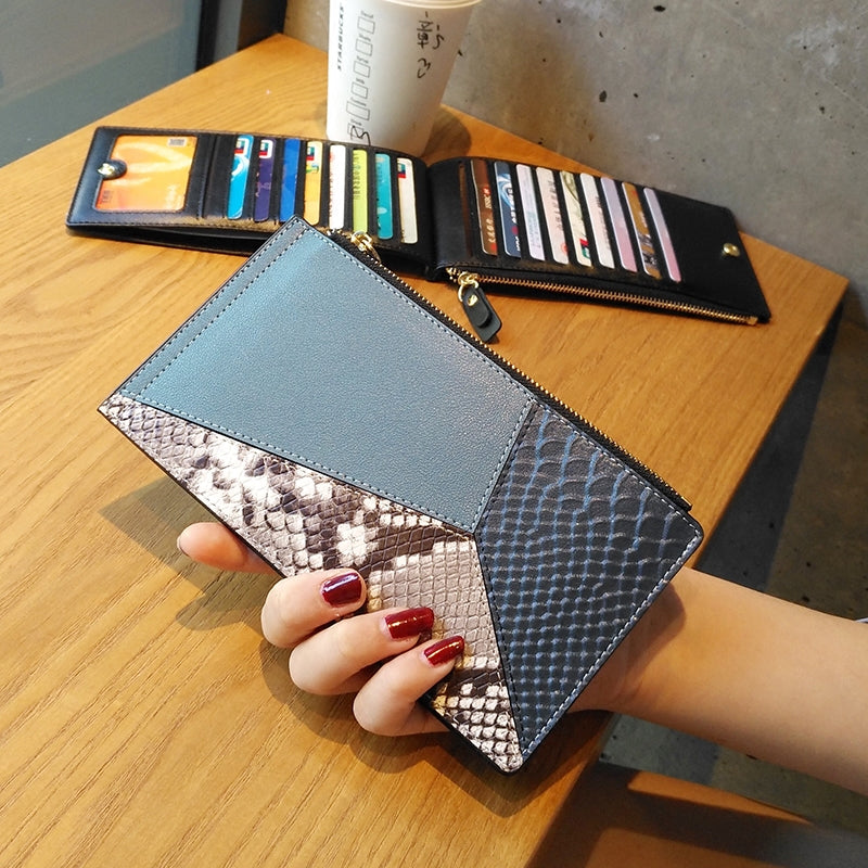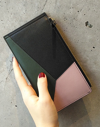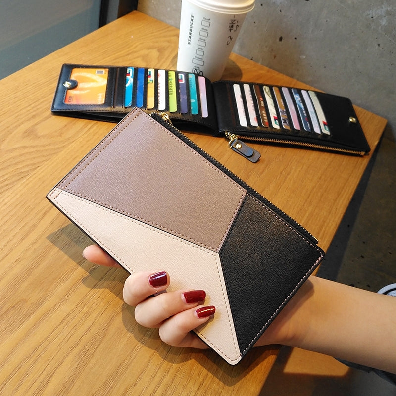 Design: Cute Womens Patchwork Light Coffee Leather Card Wallet Card Clutch Wallet Zip Card Holder Wallet for Women