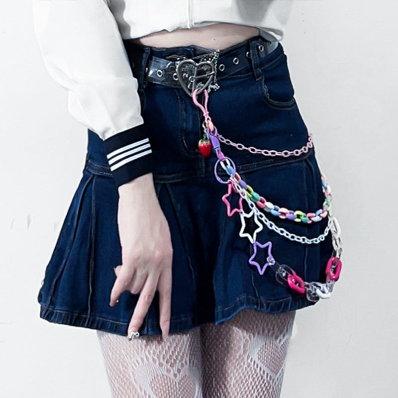 Style: Cute Womens Plastics Four Layers Pants Chain Colorful Light Jeans Chains For Women