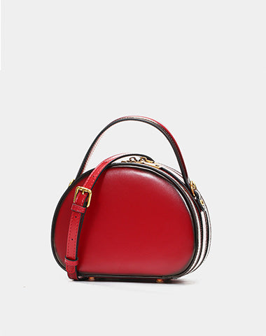 Cute Womens Red Leather Half Round Crossbody Purse Handbag Round Red Shoulder Bag for Women
