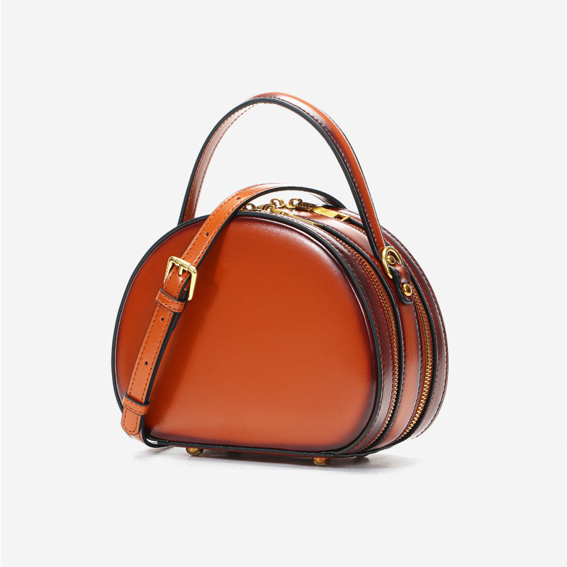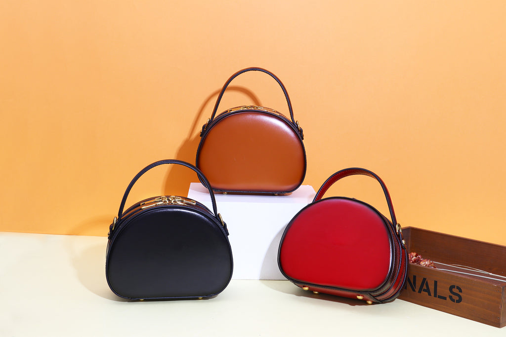 Design: Cute Womens Red Leather Half Round Crossbody Purse Round Red Shoulder Bag for Women