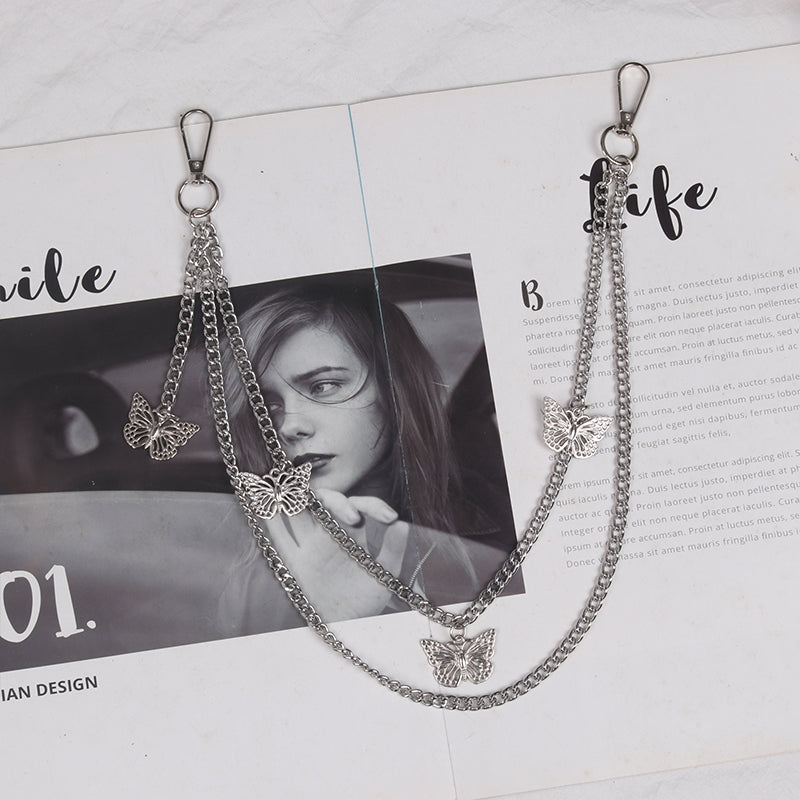 Style: Cute Womens Jeans Chain Silver Double Layers Wallet Chains Jeans Chain For Women