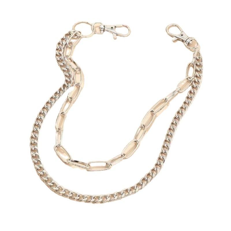 Design: Cute Womens Silver Double Layers Pants Chain Silver Double Biker Wallet Chains With Big Ring For Women