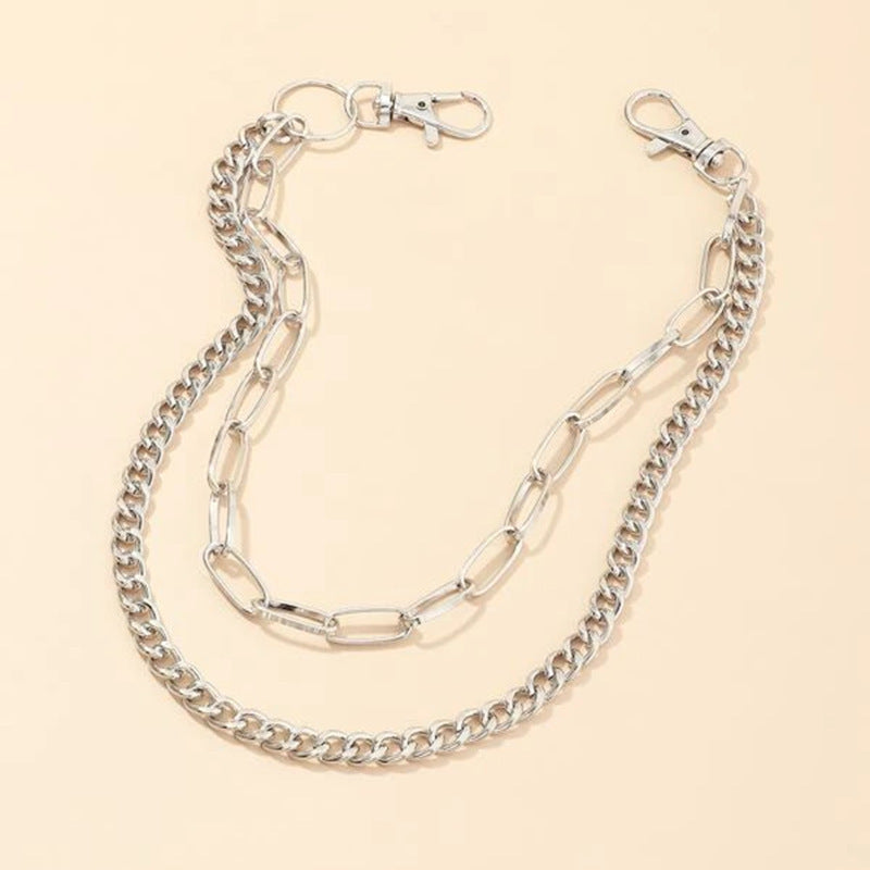 Design: Cute Womens Silver Double Layers Pants Chain Silver Double Biker Wallet Chains With Big Ring For Women