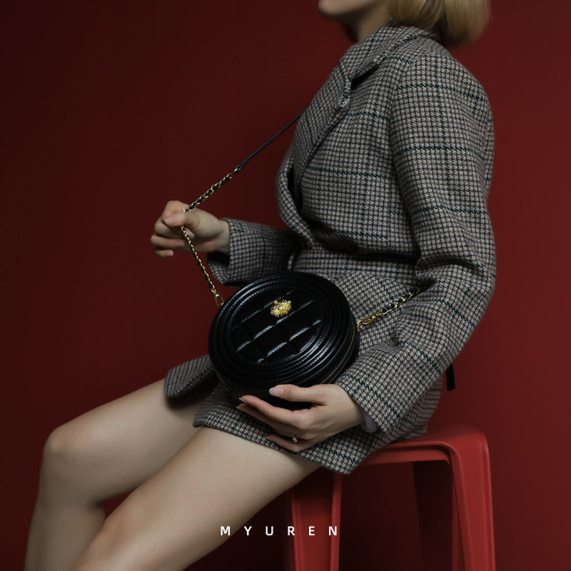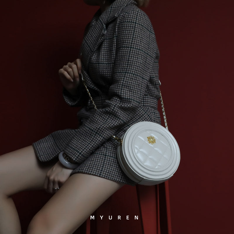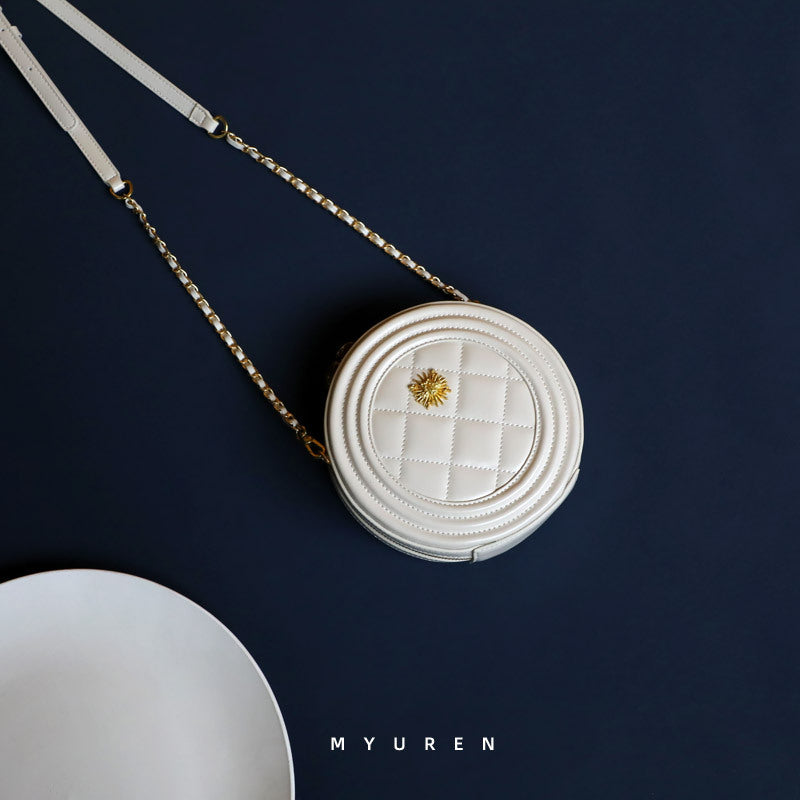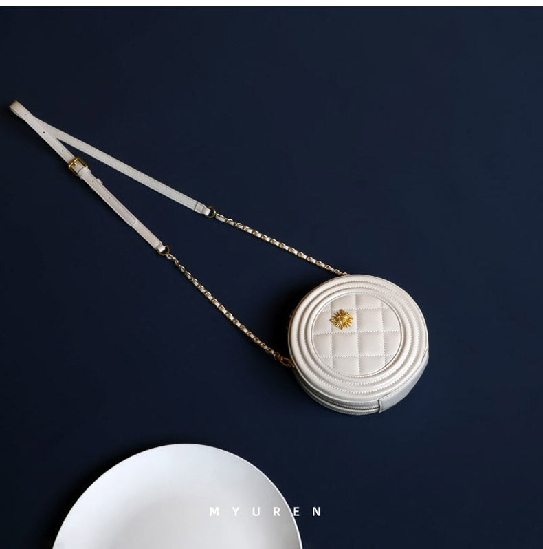 Design: Cute Womens White Leather Round Crossbody Purse Round White Chain Shoulder Bag for Women