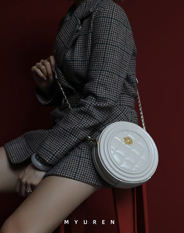 Cute Womens White Leather Round Crossbody Purse Round White Chain Shoulder Bag for Women