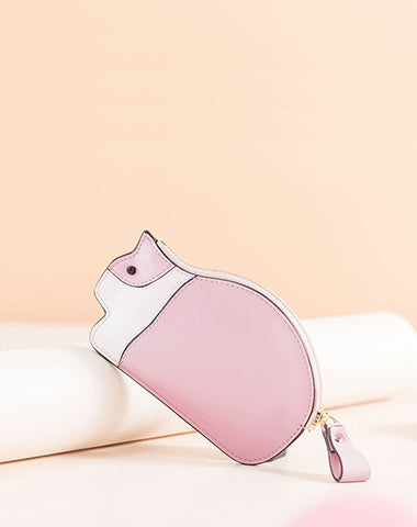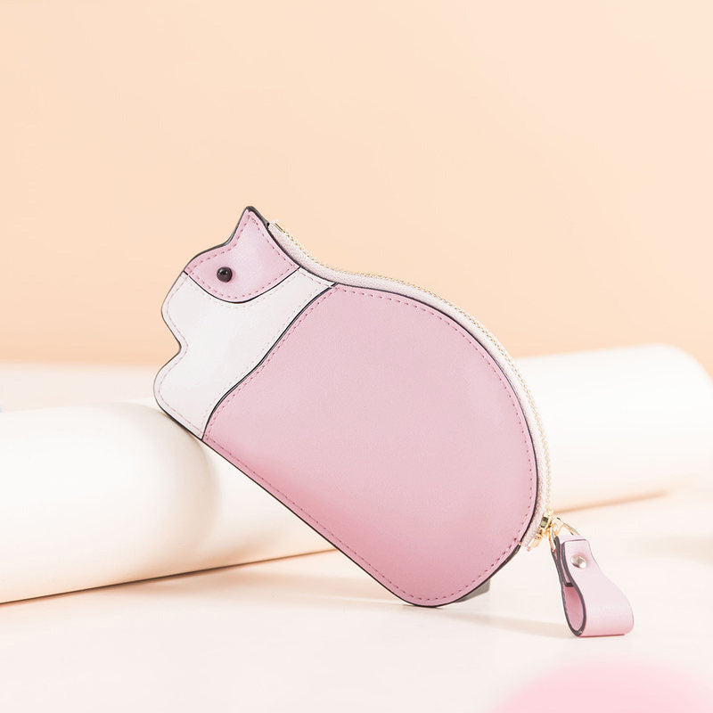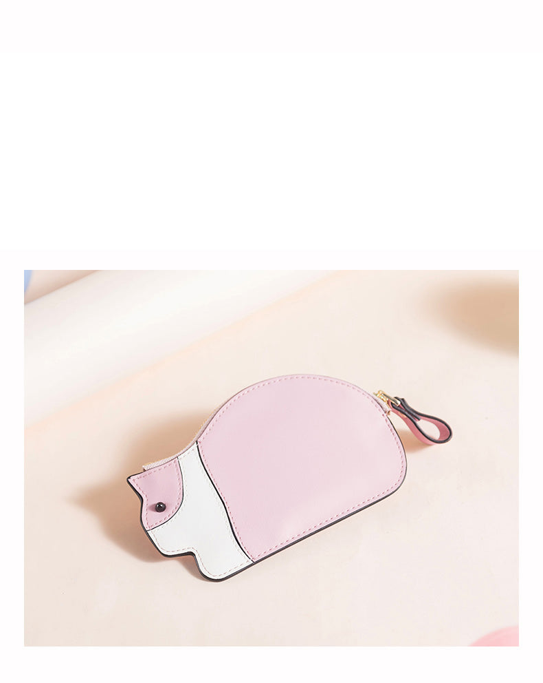 Style: Cutest Women Pink Leather Cat Small Zipper Wallet Slim Card Wallet Change Wallet For Women