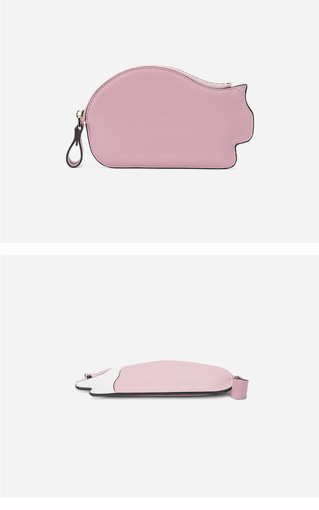 Design: Cutest Women Pink Leather Cat Small Zipper Wallet Slim Card Wallet Change Wallet For Women