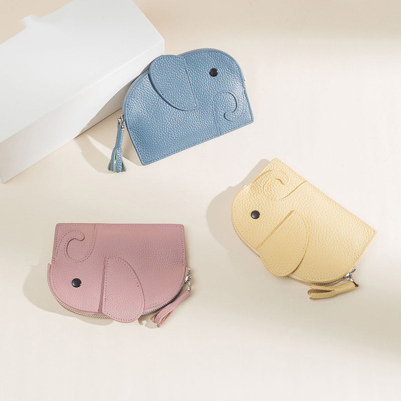 Style: Cutest Women Leather Elephant Small Zipper Wallet Keychain with Wallet Change Wallet For Women