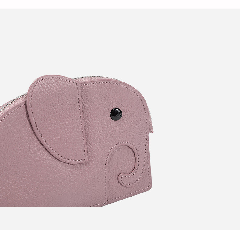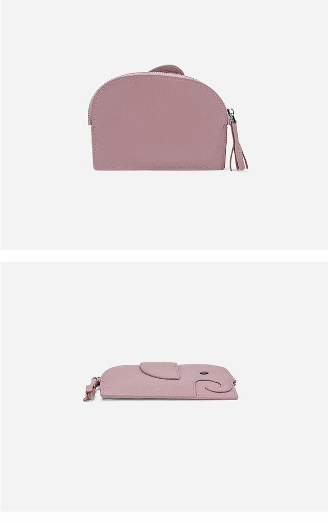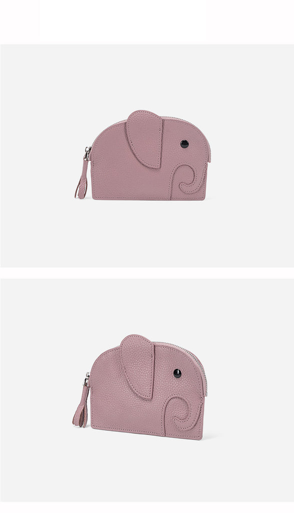 Cutest Women Pink Leather Elephant Small Zipper Wallet Keychain with Wallet Change Wallet For Women