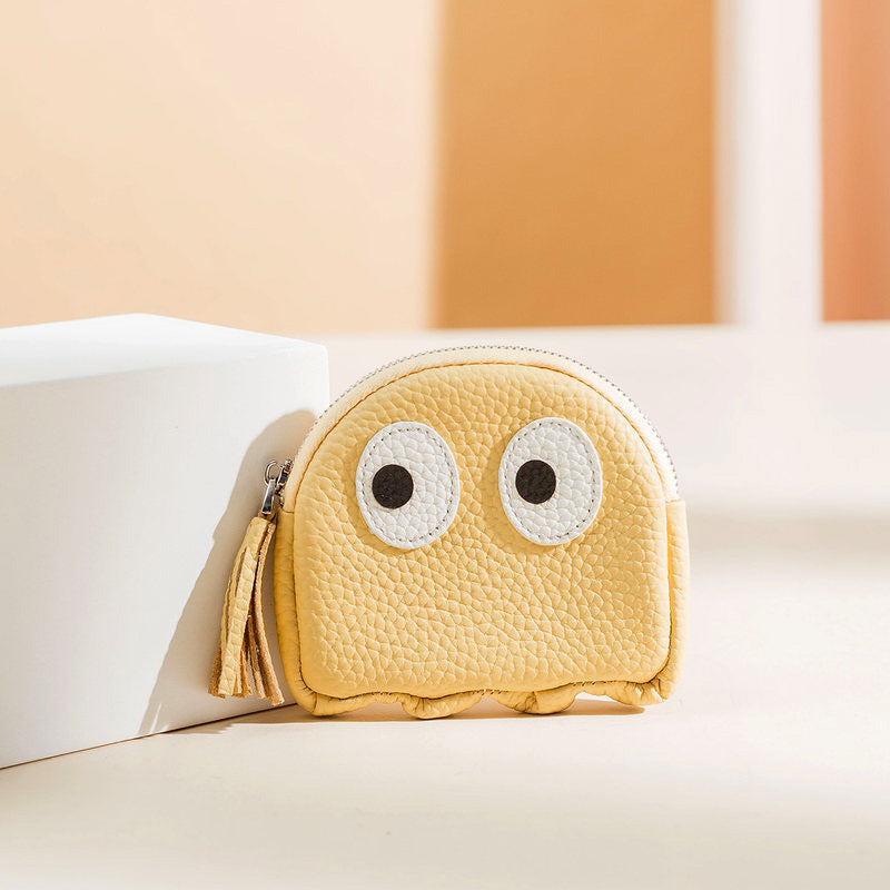 Cutest Women Yellow Leather Pac-Man Coin Wallet Small Keychain with Wallet Change Wallet For Women