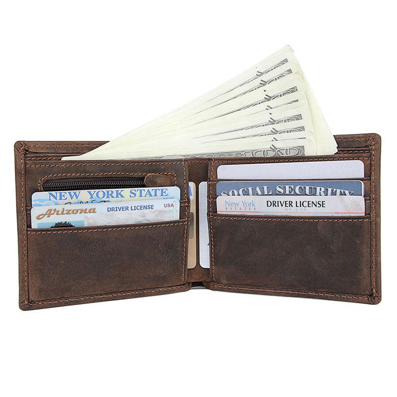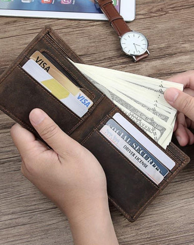 Design: Dark Brown Bifold Leather Mens Wallet Slim Wallet billfold Wallet Driver's License Wallet for Men