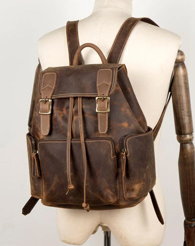 Design: Dark Brown Business Mens Leather 13 inches Computer Backpacks Cool Travel Backpacks School Backpack for men