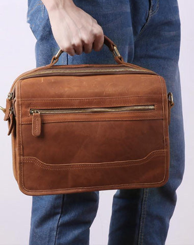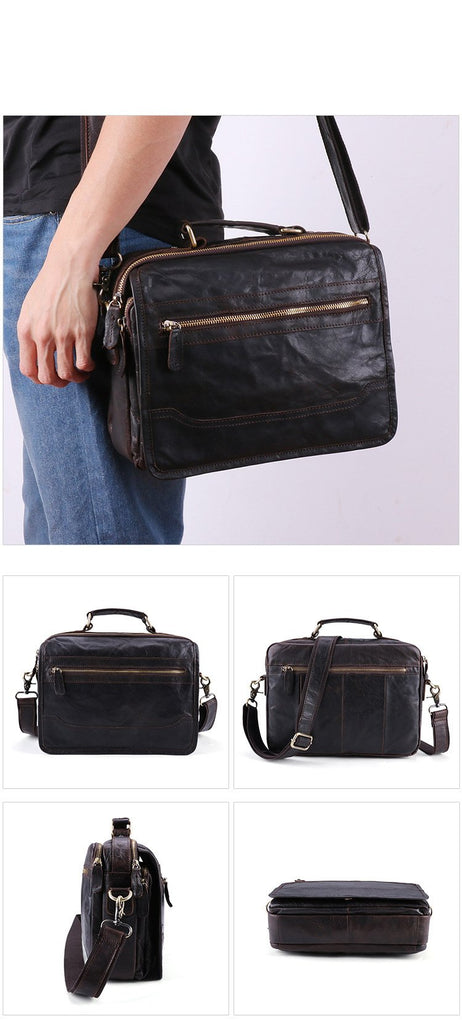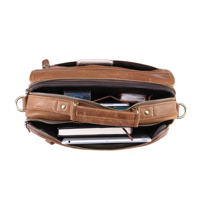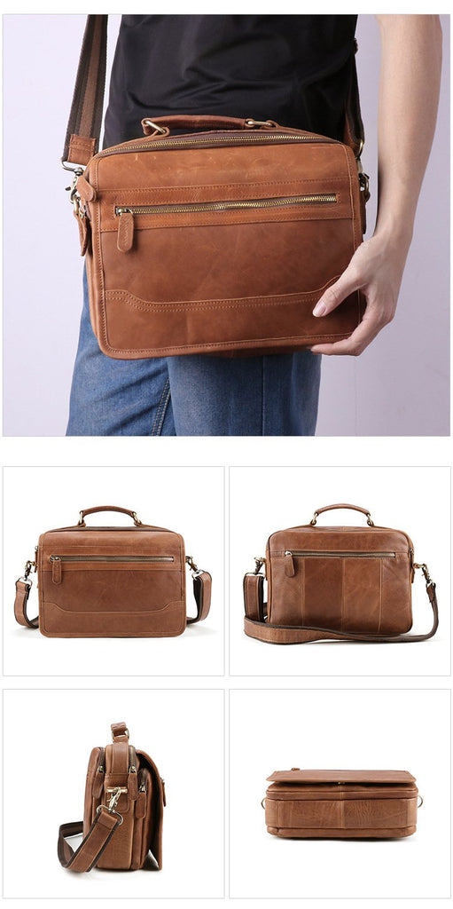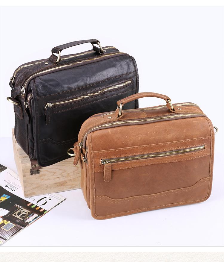 Design: Dark Brown Cool Leather 10 inches Light Brown Briefcase Messenger Bag Handbag Shoulder Bag For Men