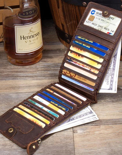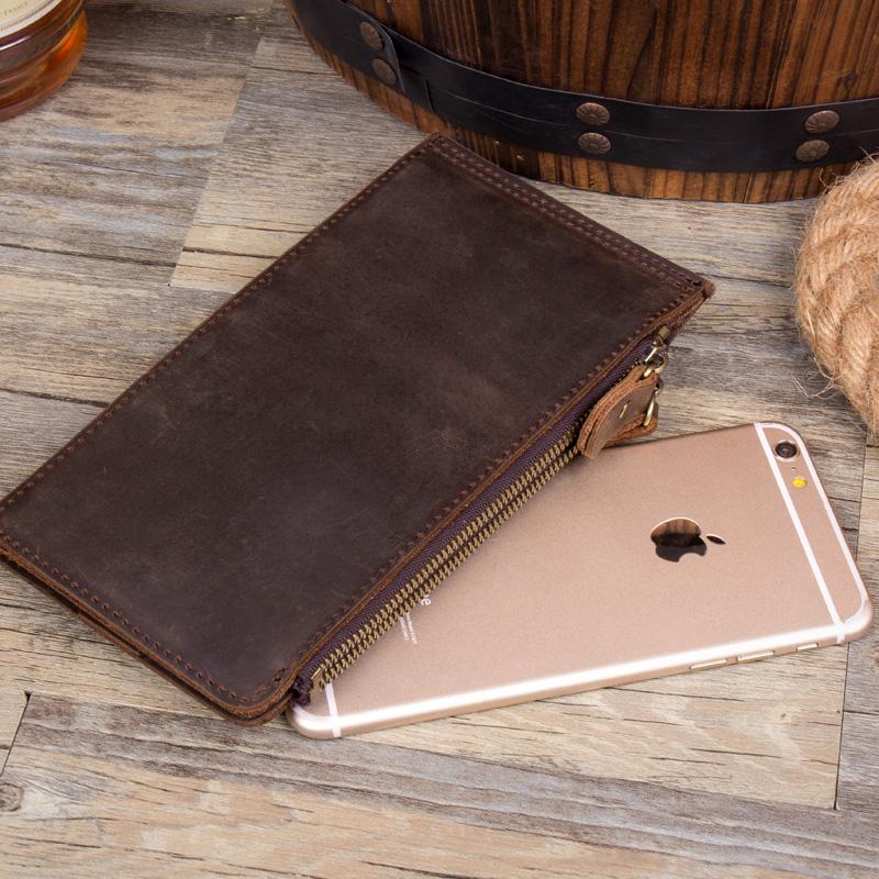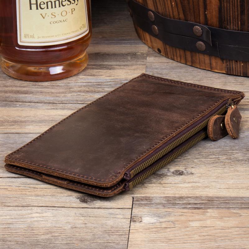 Style: Dark Brown Cool Mens long Wallet Mutlicard Wallet Clutch Bag Mobile Bags for Men