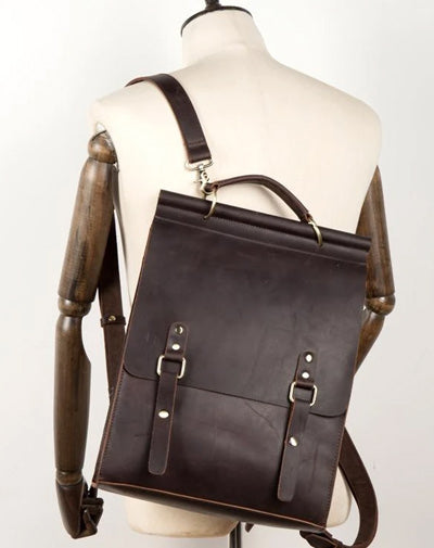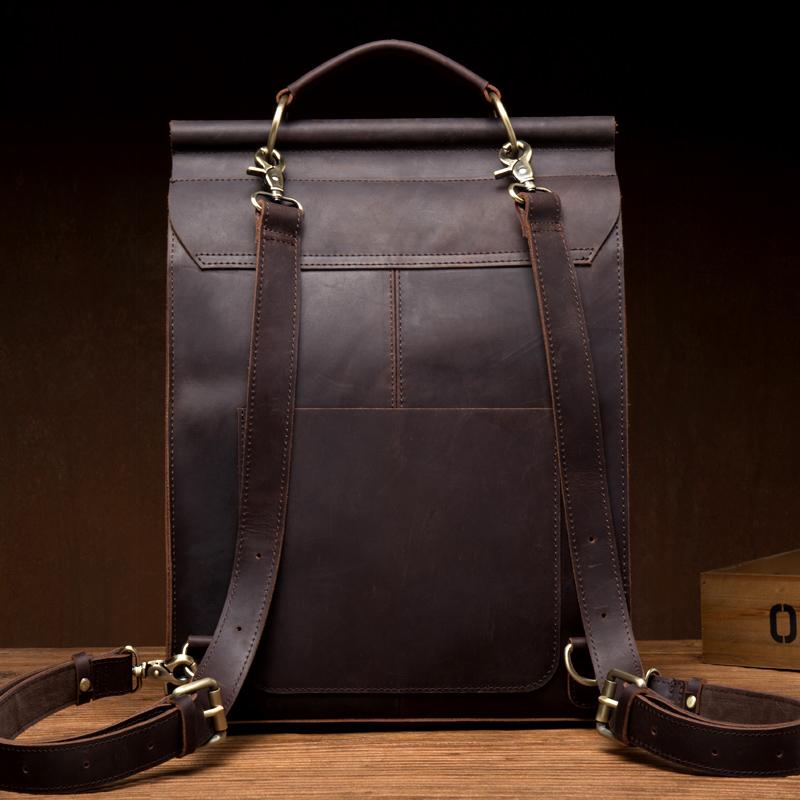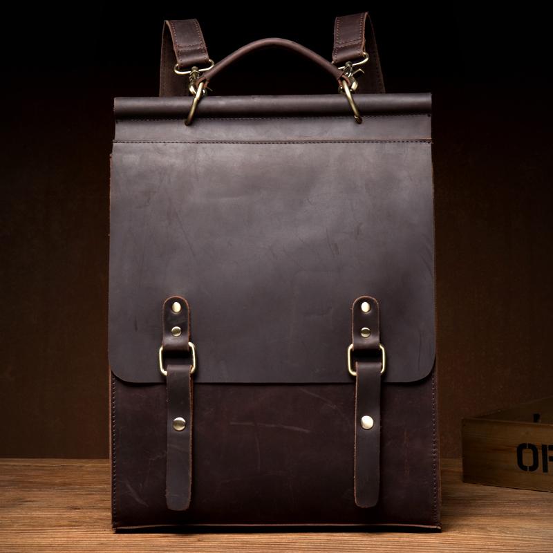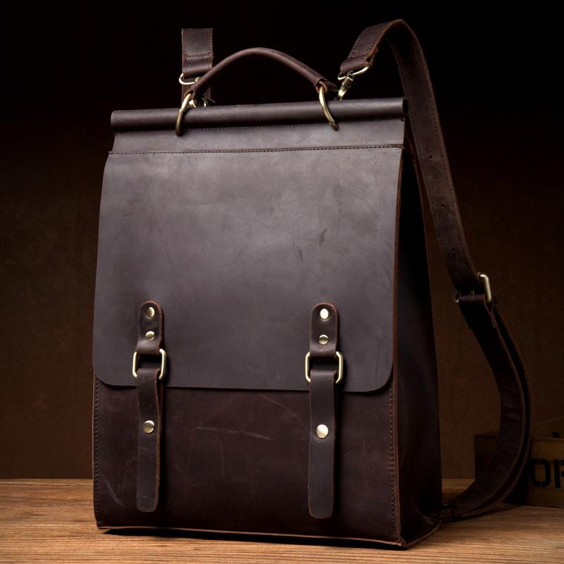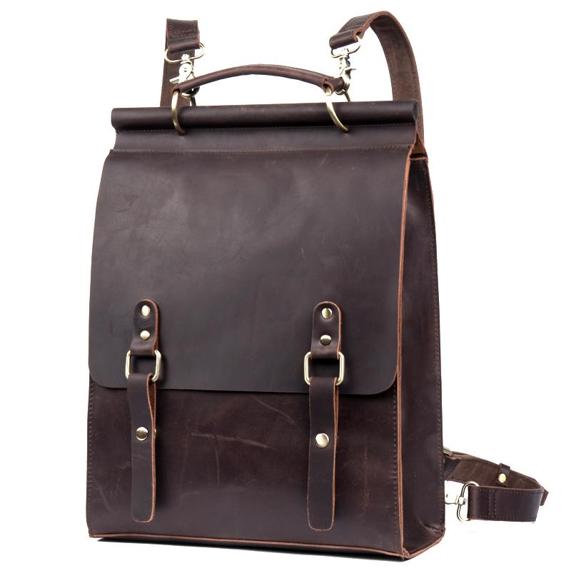 Design: Dark Brown Fashion Mens Leather 13-inch Computer Backpacks Cool Travel Backpacks School Backpack for men