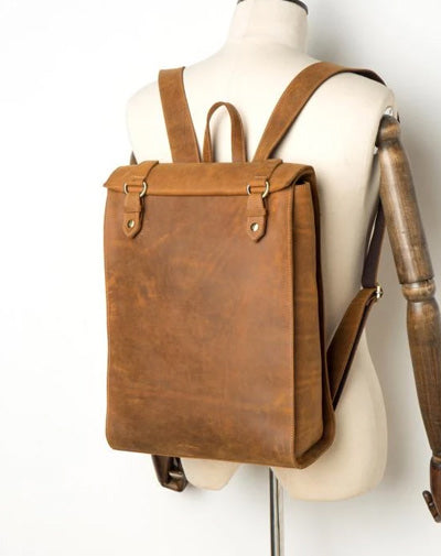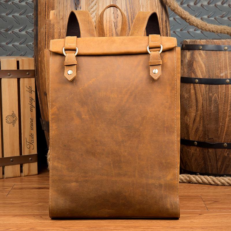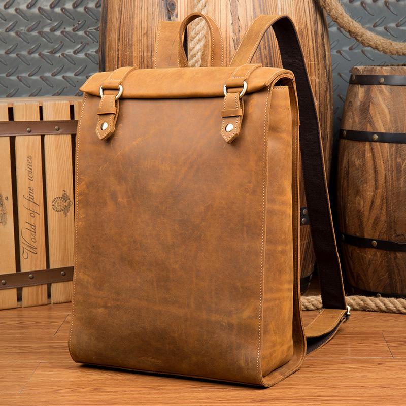 Fashion Brown Mens Leather 15-inch Black Computer Backpack Brown Travel Backpacks School Satchel Backpacks for men