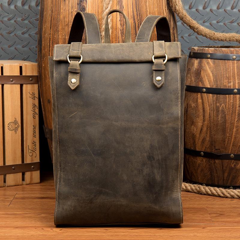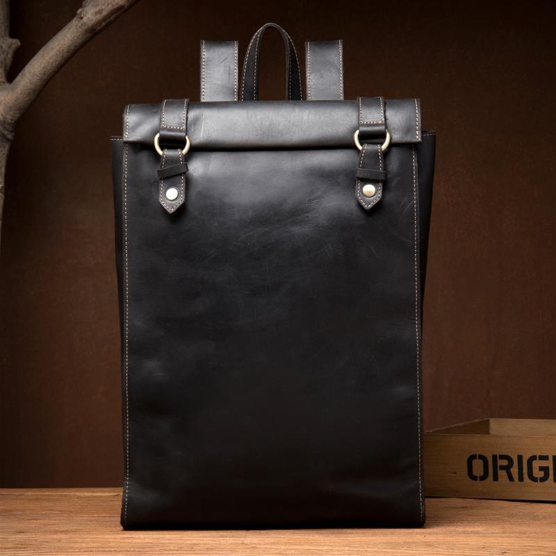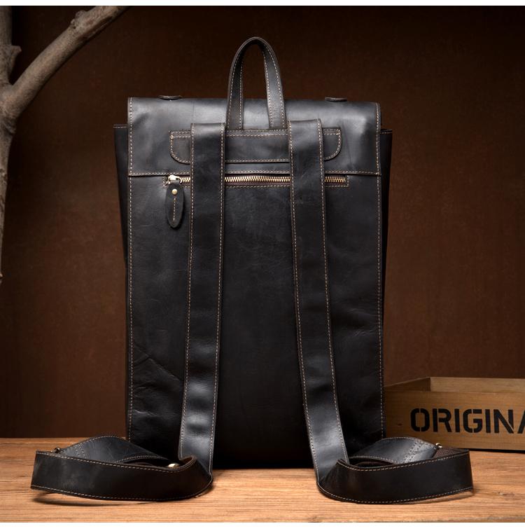 Design: Dark Brown Fashion Mens Leather 15-inch Black Computer Backpack Brown Travel Backpacks School Backpacks for men