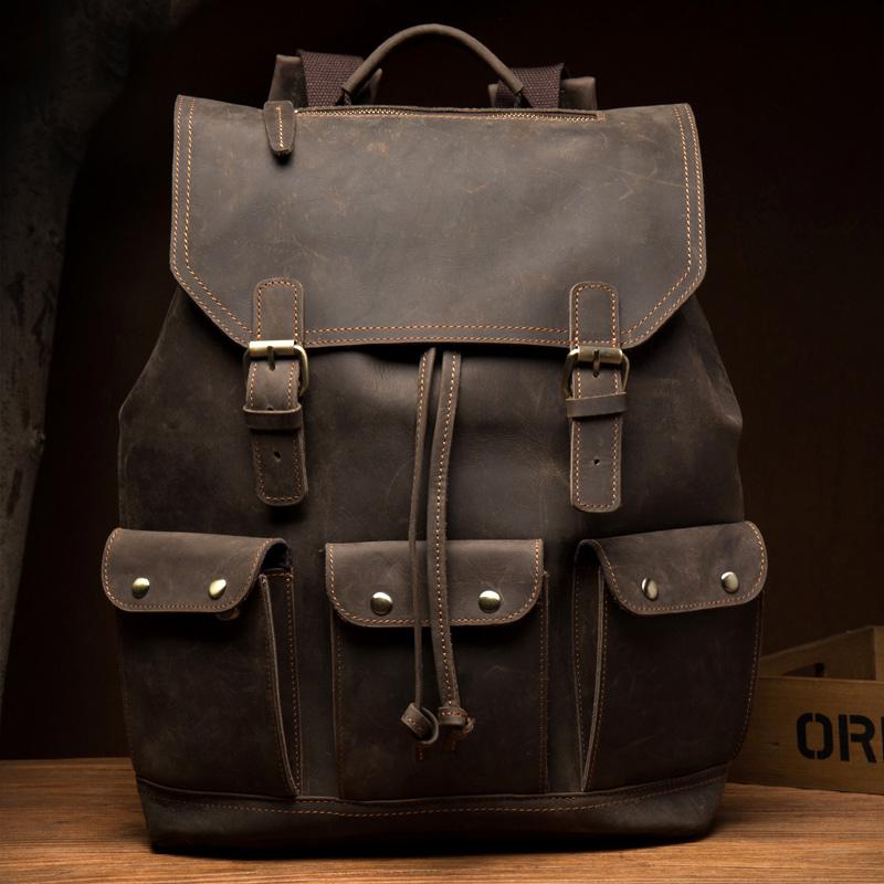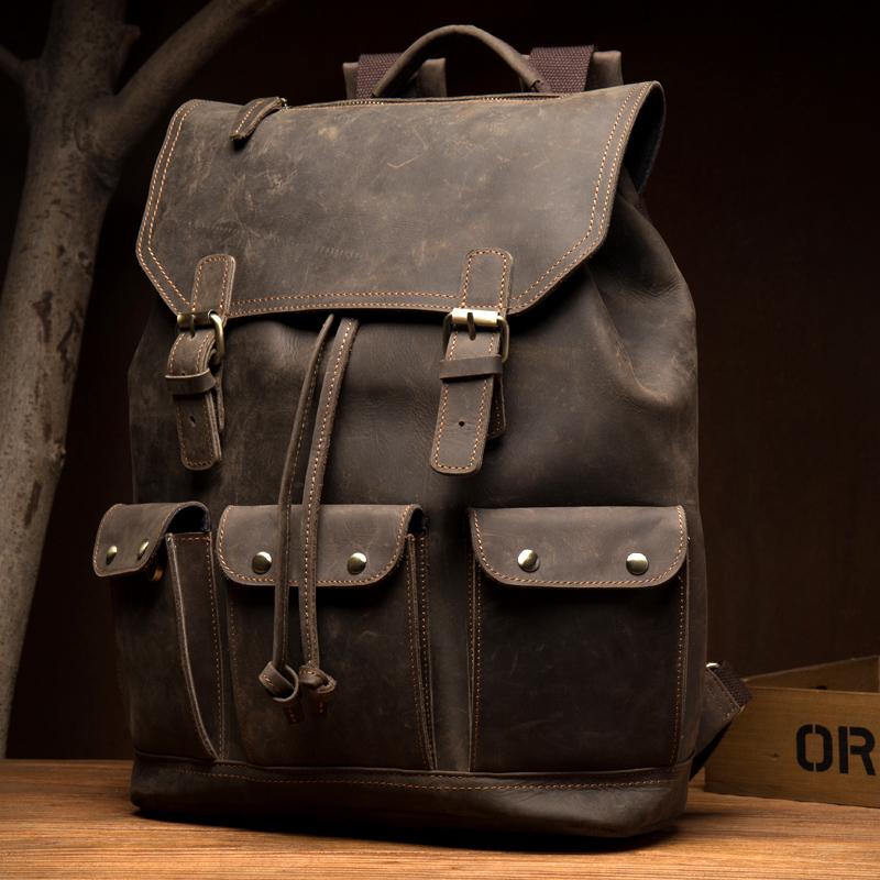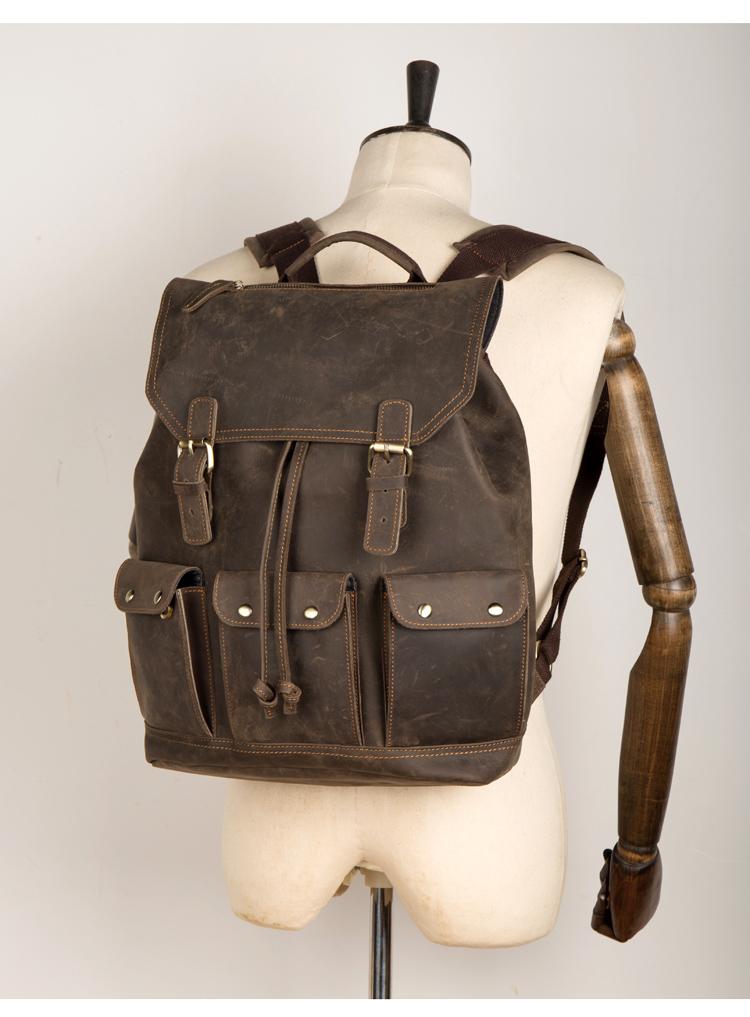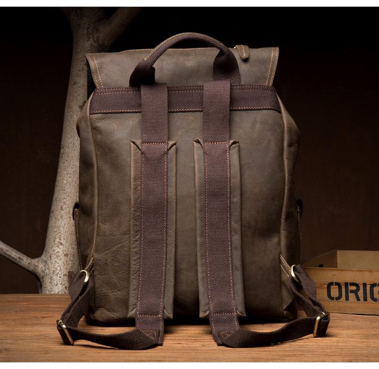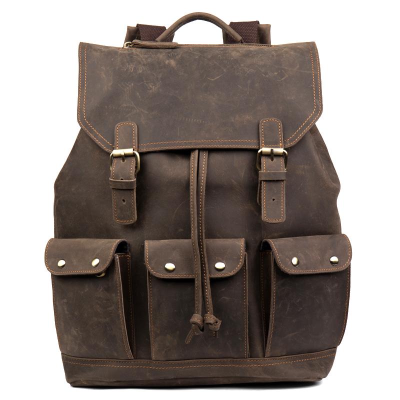 Design: Dark Brown Fashion Mens Leather 15-inch Computer Backpack Brown Travel Backpack School Backpacks for men