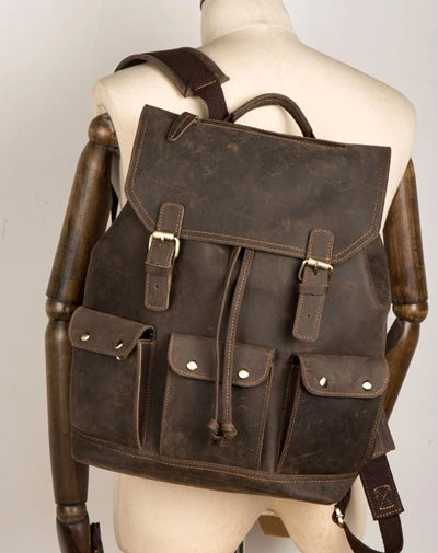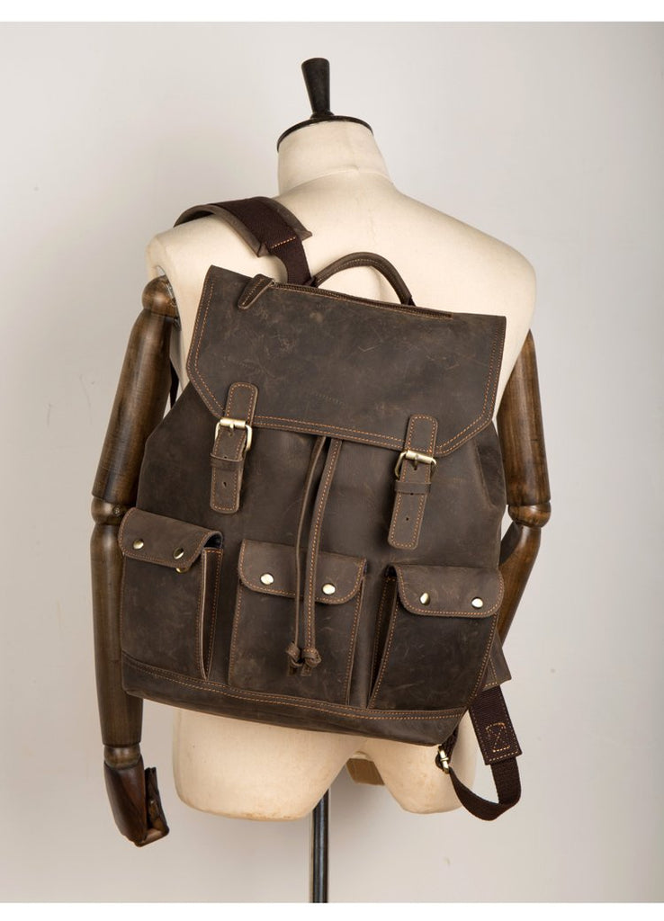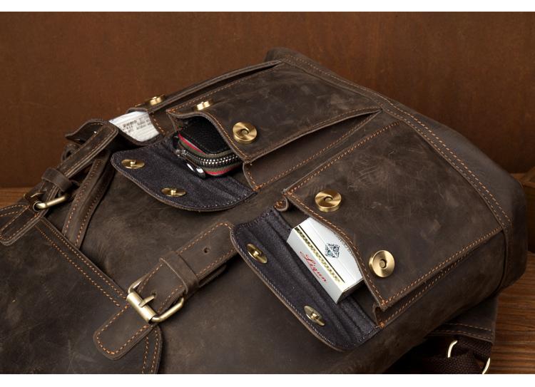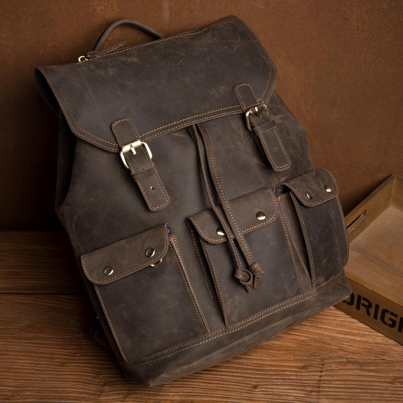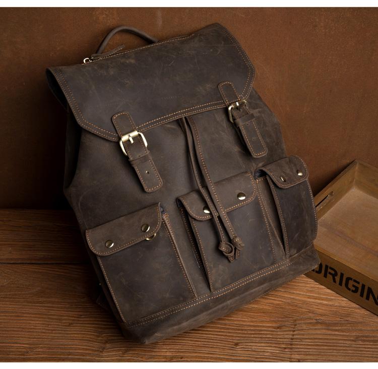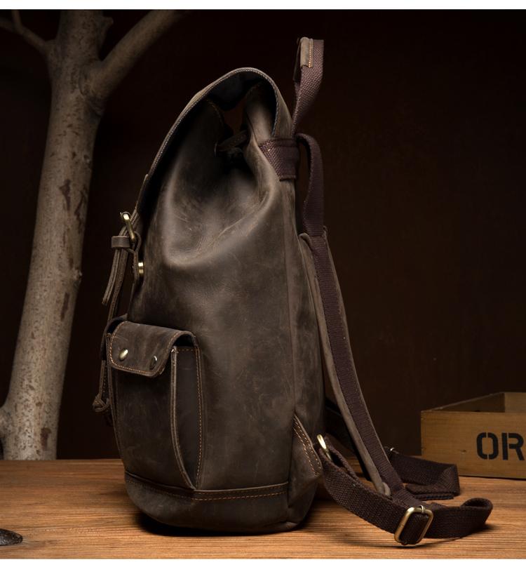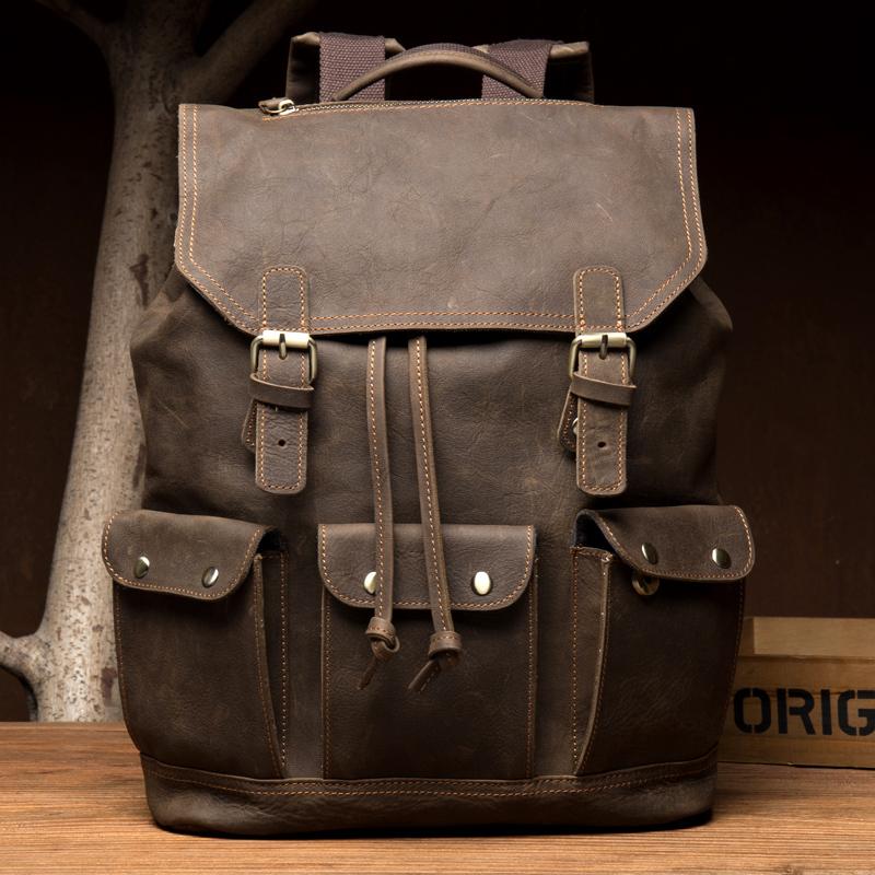 Design: Dark Brown Fashion Mens Leather 15-inch Computer Backpack Brown Travel Backpack School Backpacks for men