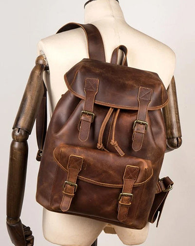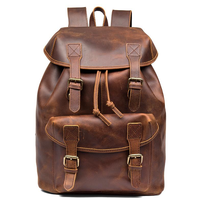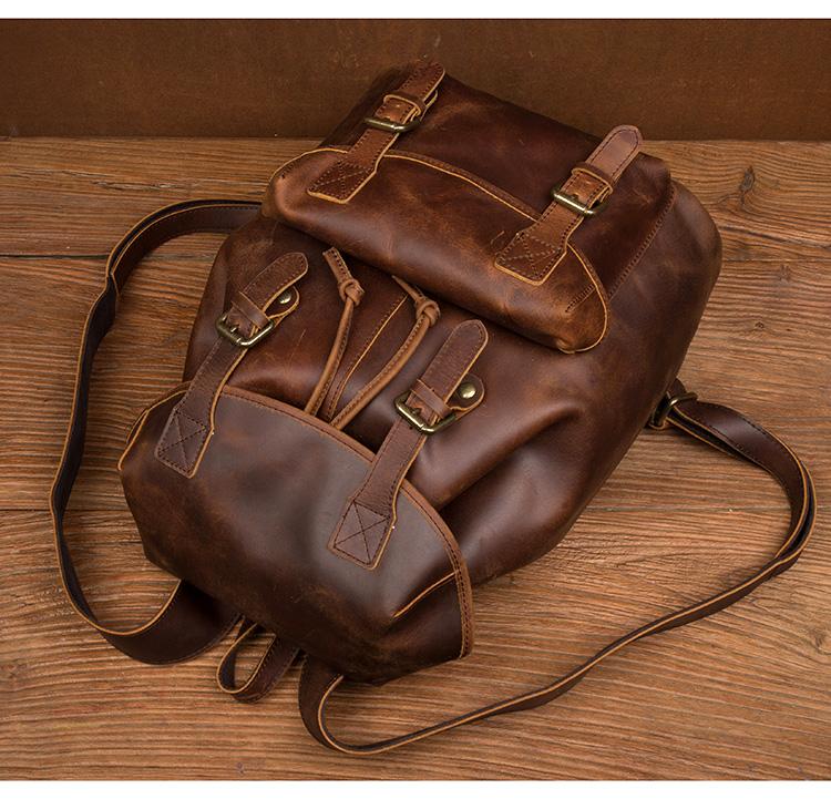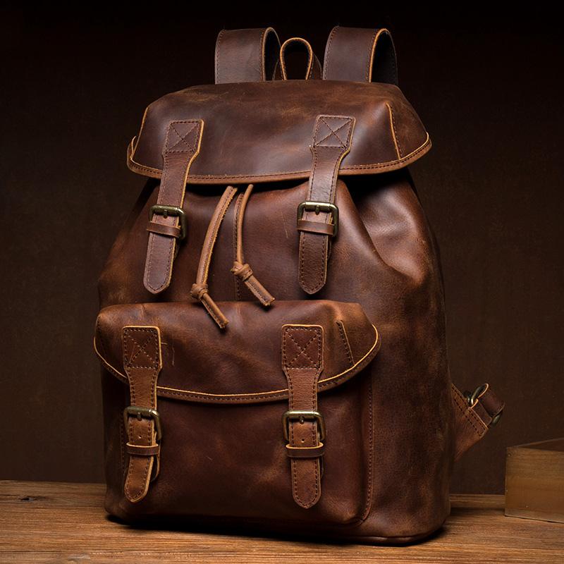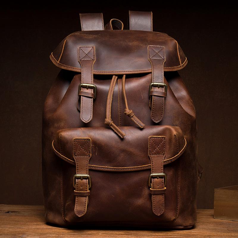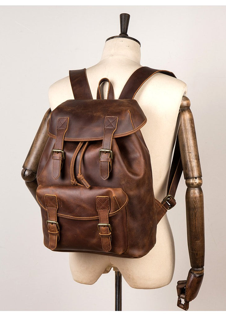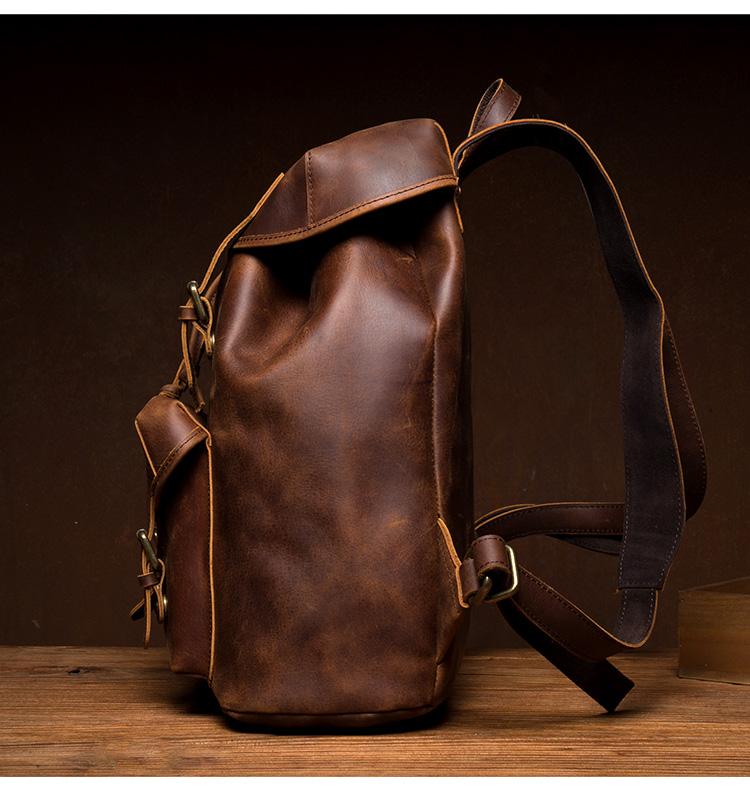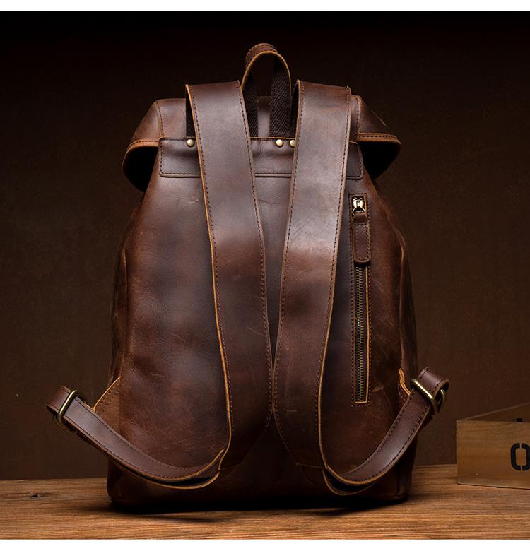 Design: Dark Brown Fashion Mens Leather 15-inch Computer Backpacks Cool Travel Backpacks School Backpack for men