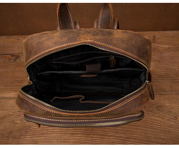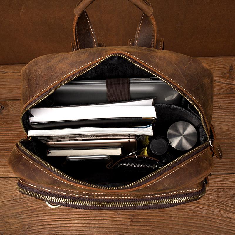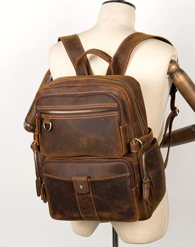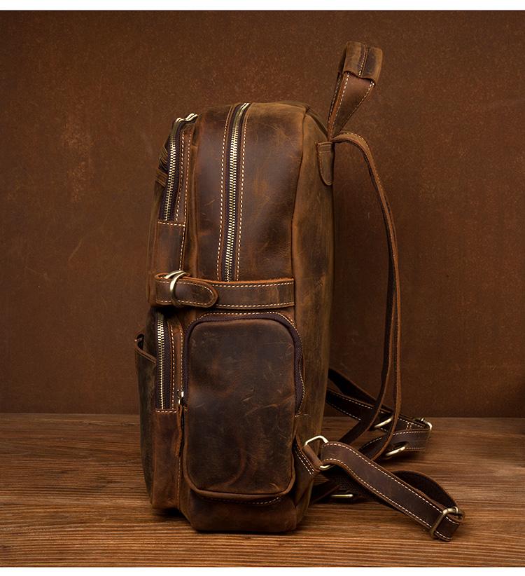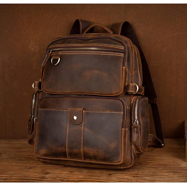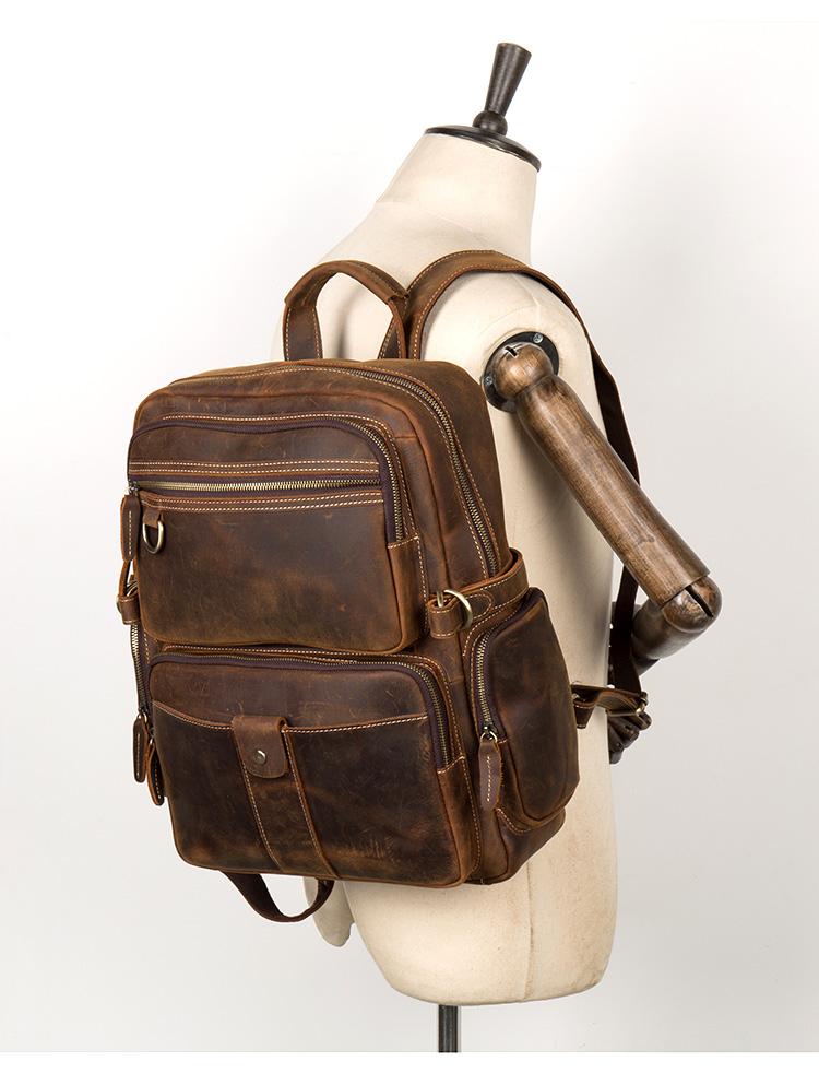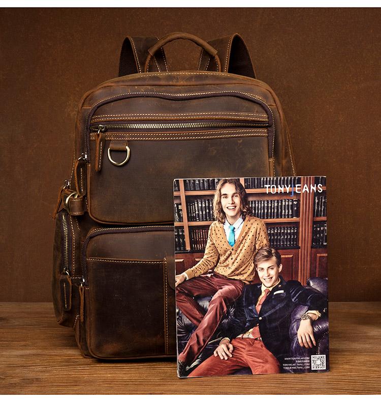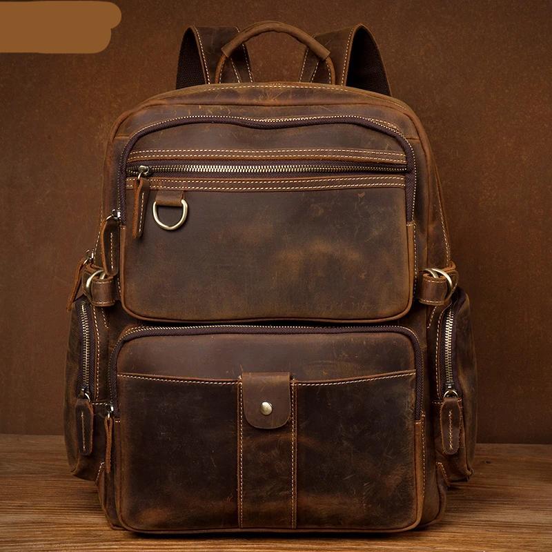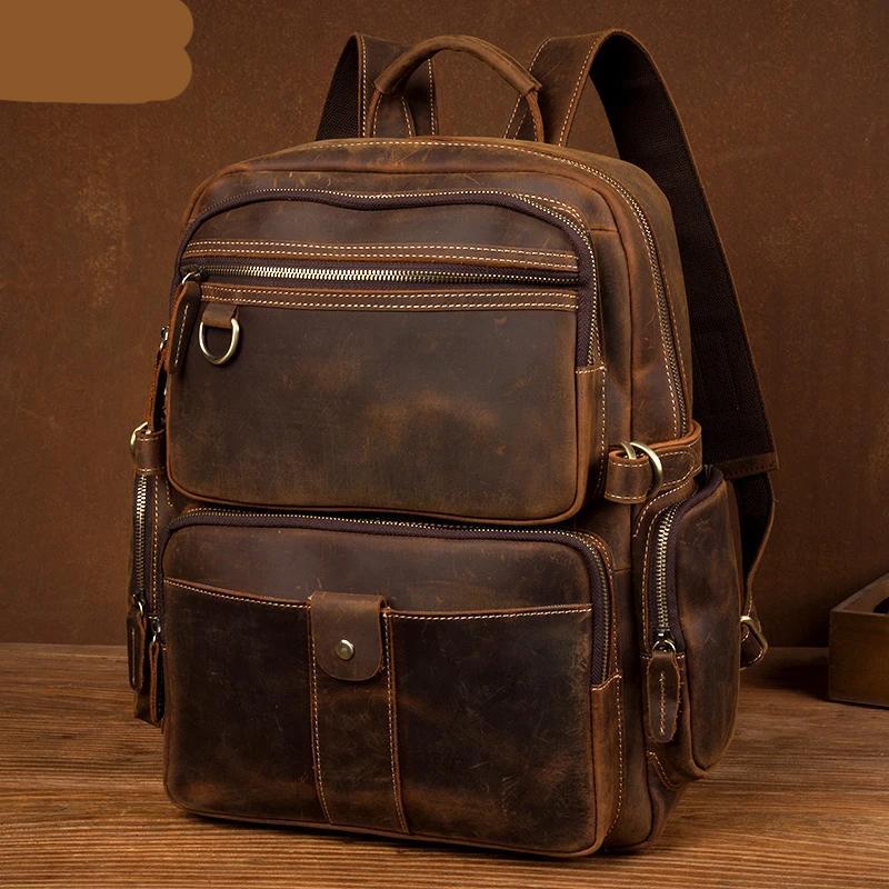 Dark Brown Mens Leather 15-inch Computer Backpacks Fashion Travel Backpacks School Backpacks for men