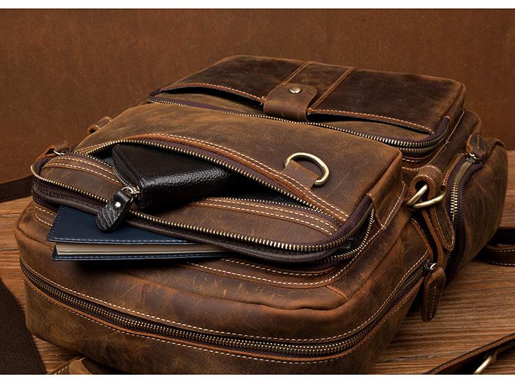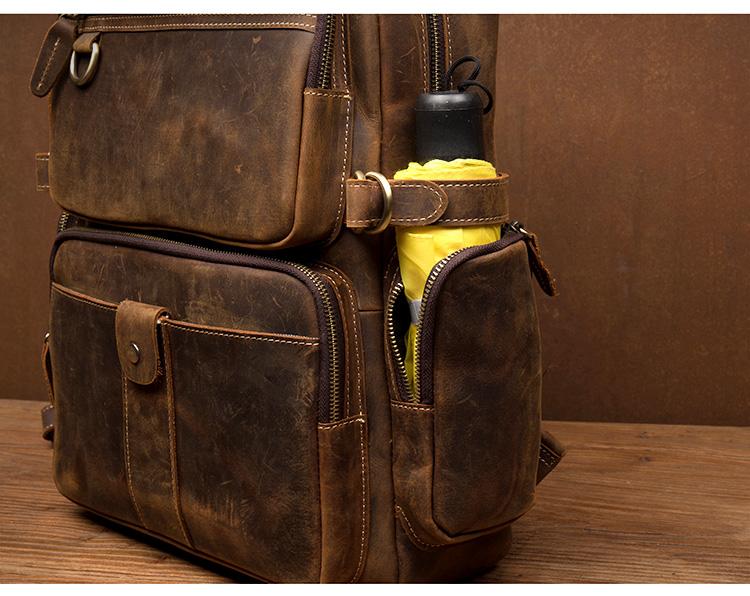 Design: Dark Brown Fashion Mens Leather 15-inch Computer Backpacks Travel Backpacks School Backpacks for men