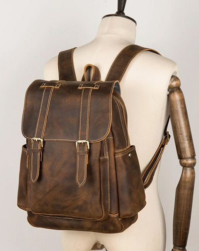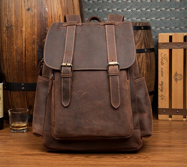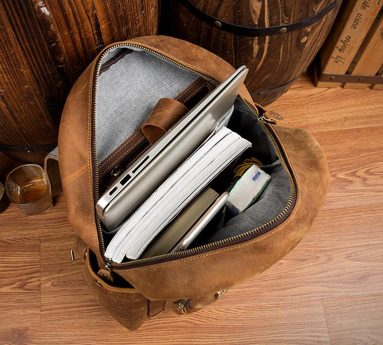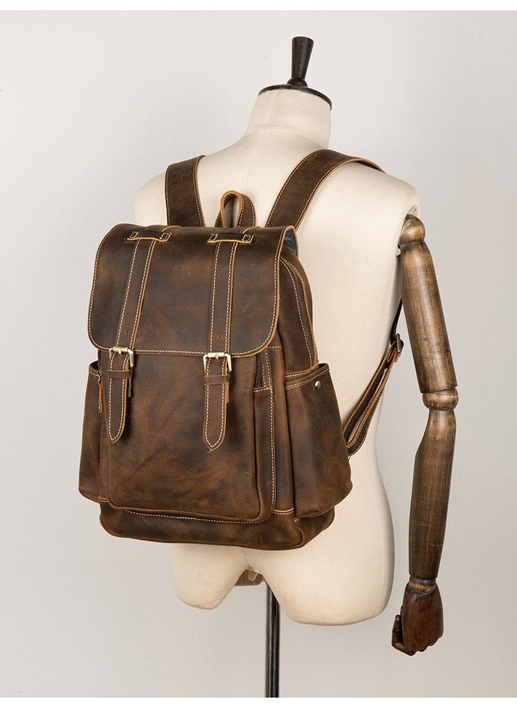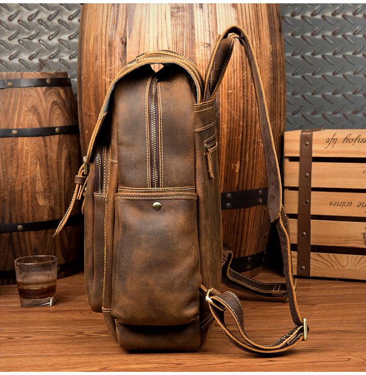 Style: Dark Brown Fashion Mens Leather 15-inch Light Brown Computer Backpack Brown Travel Backpacks School Backpacks for men