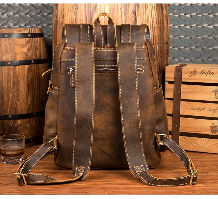 Design: Dark Brown Fashion Mens Leather 15-inch Light Brown Computer Backpack Brown Travel Backpacks School Backpacks for men