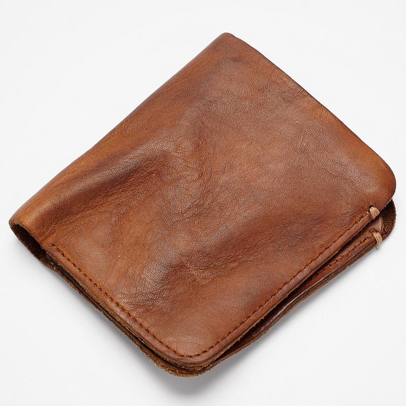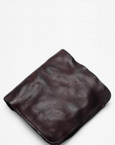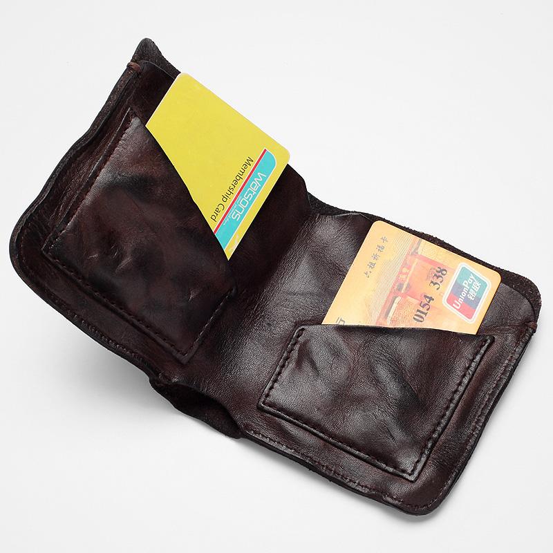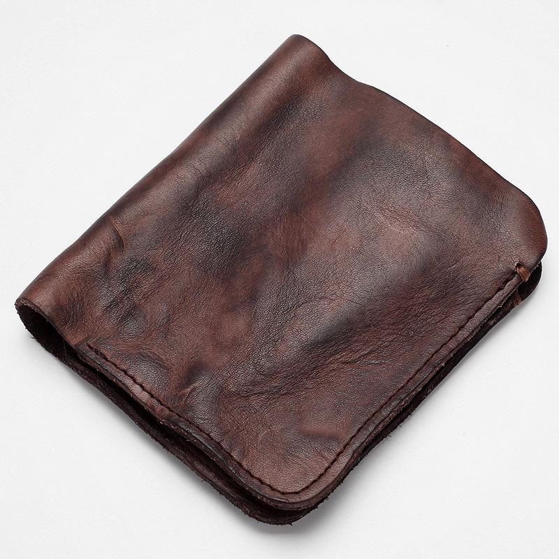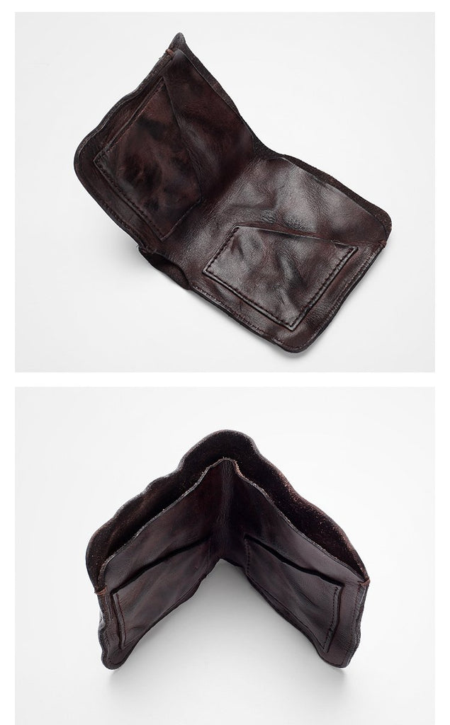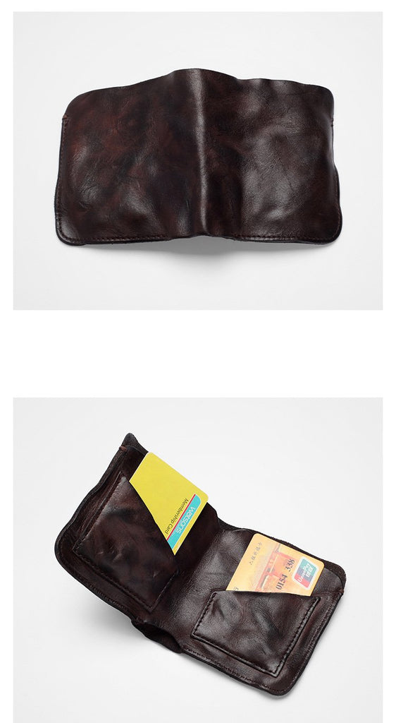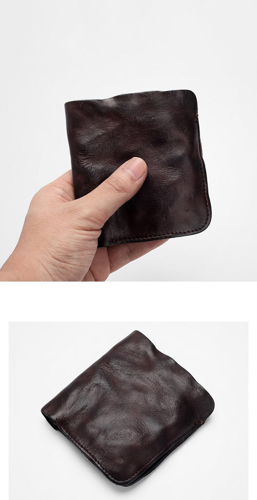 Style: Dark Brown Handmade Leather Mens Bifold Small Wallet billfold Wallet Card Wallet For Men