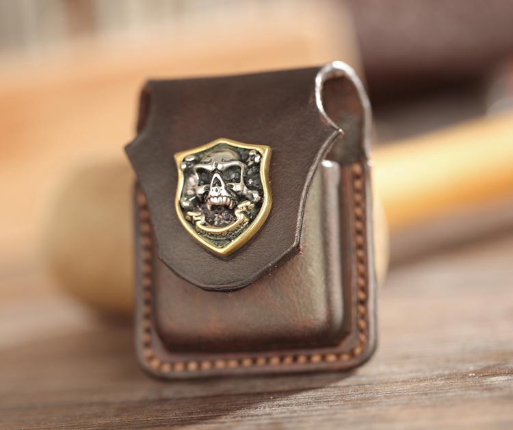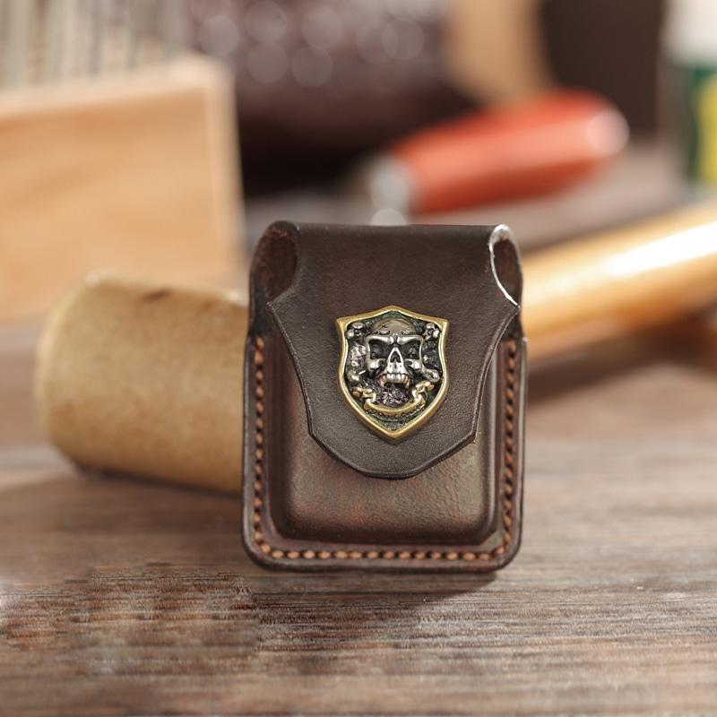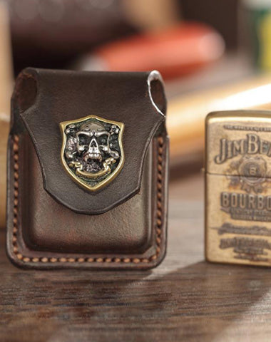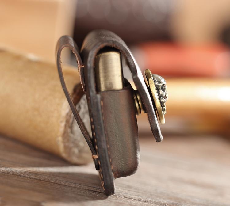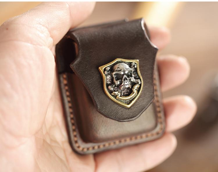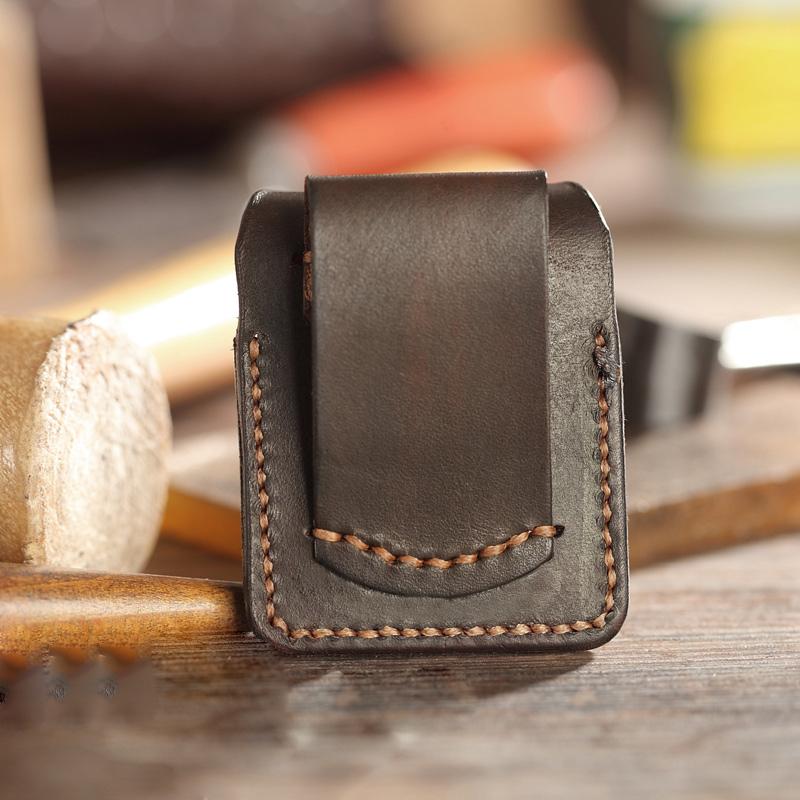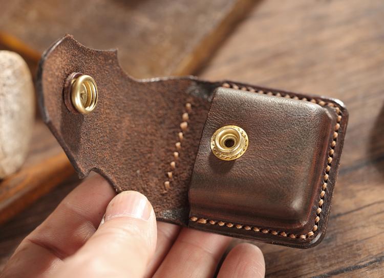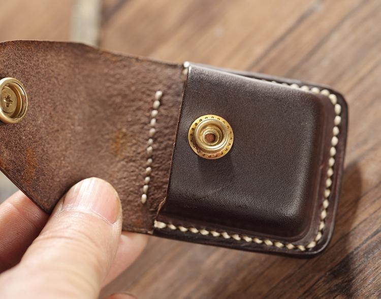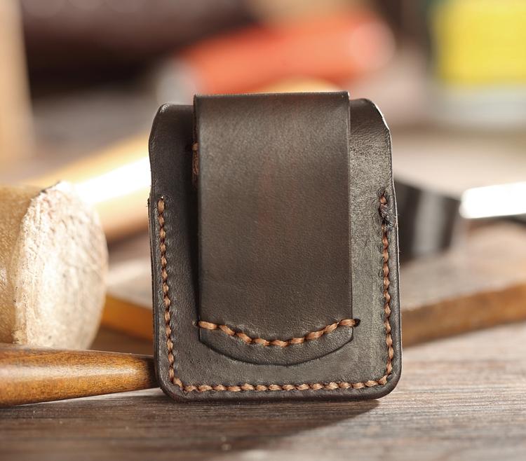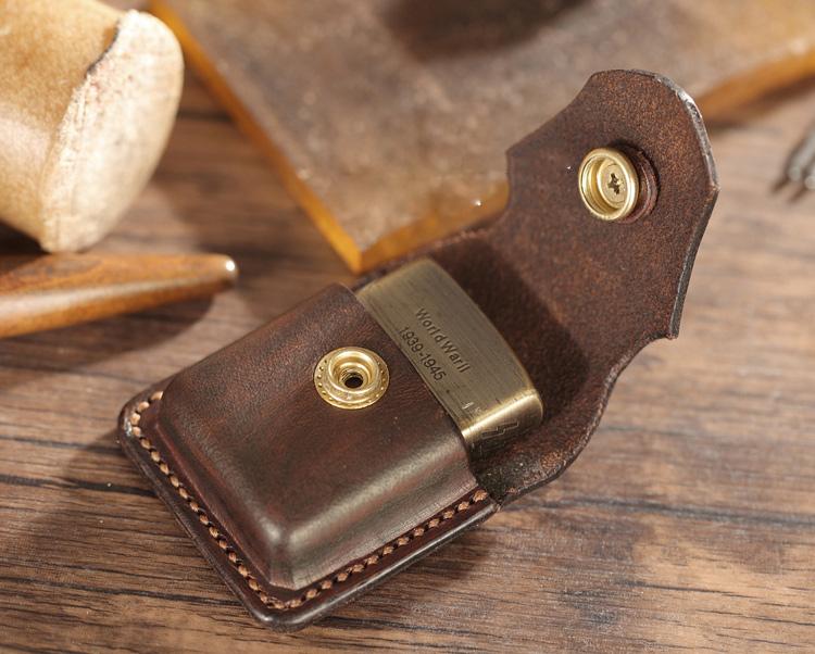 Style: Dark Brown Handmade Leather Mens Zippo Lighter Cases With Belt Loop Zippo Standard Lighter Holders For Men